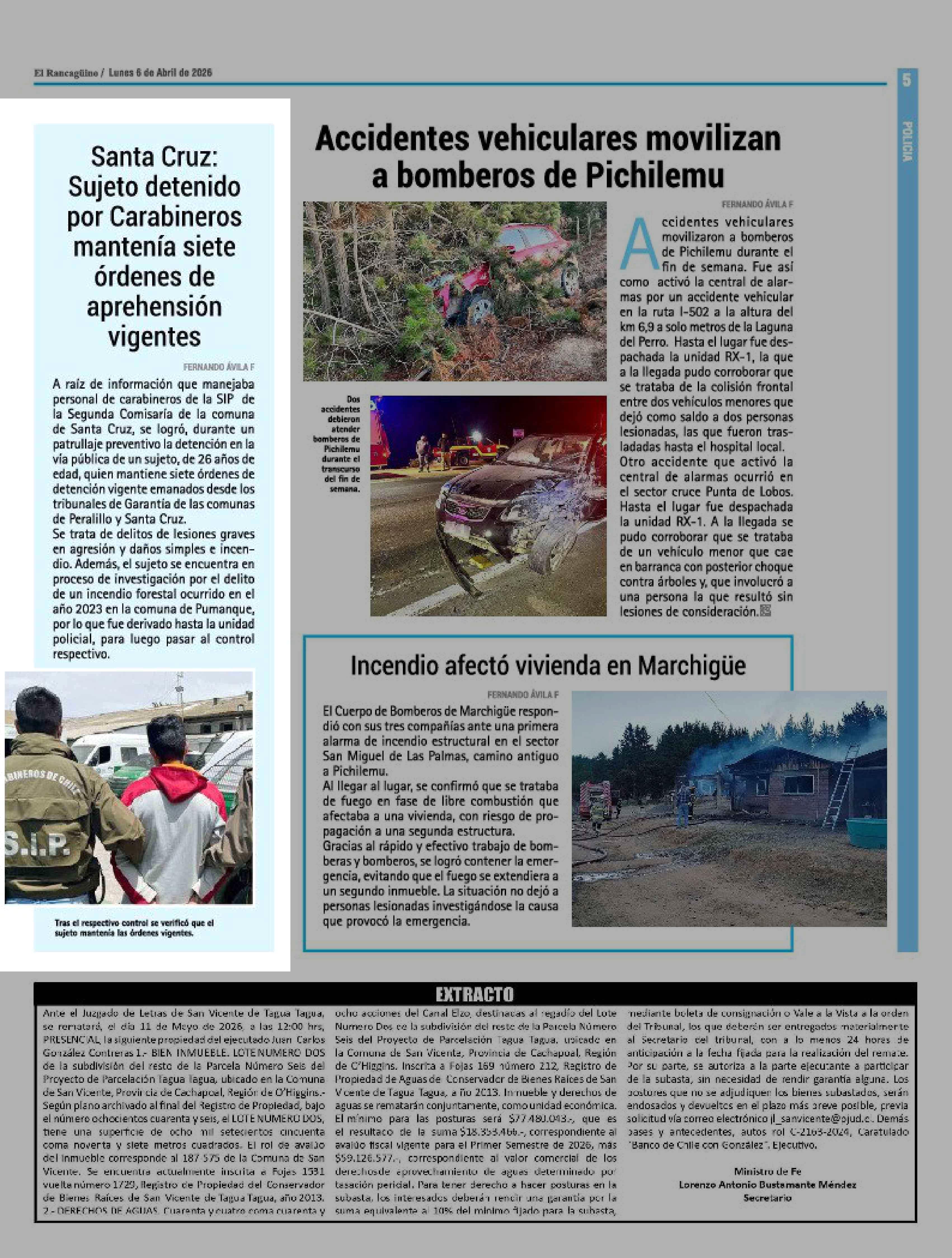 | Fecha: | 06-04-2026 | Sector: | Noticia general | Región: | Región del Libertador General Bernardo O'Higgins |