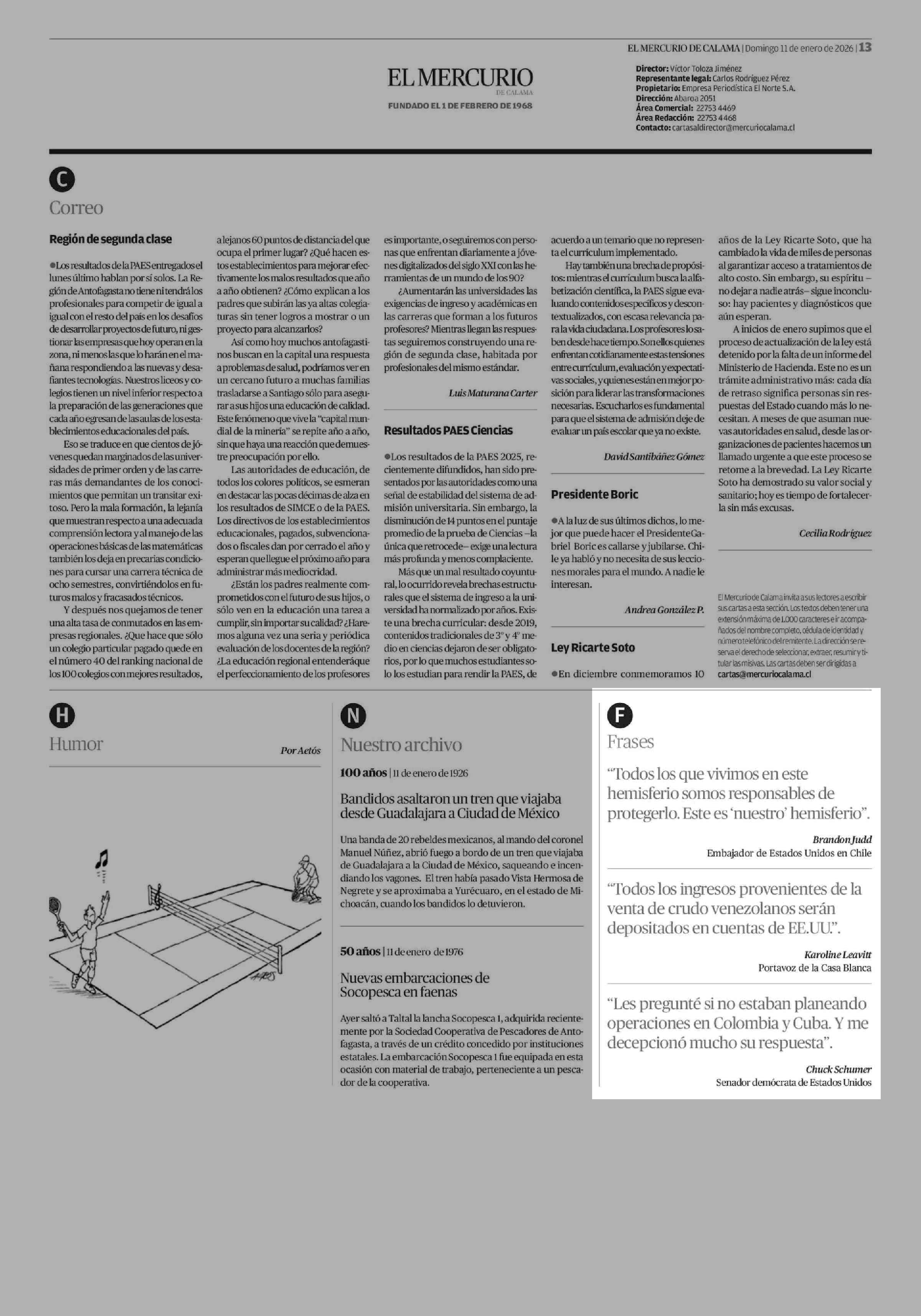 | Fecha: | 11-01-2026 | Sector: | Noticia general | Región: | Región de Antofagasta |