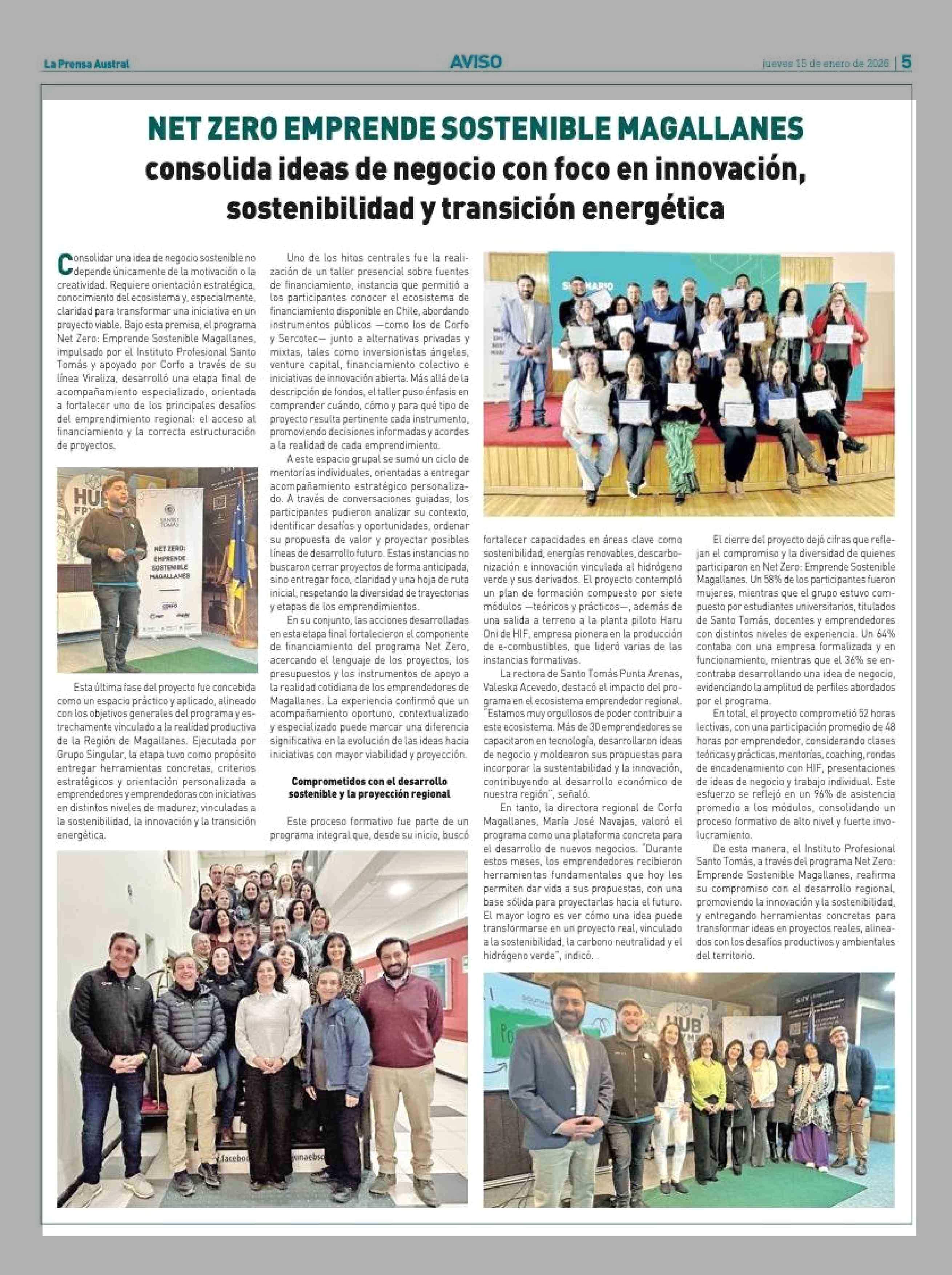 Título: NET ZERO EMPRENDE SOSTENIBLE MAGALLANES consolida ideas de negocio con foco en innovación, sostenibilidad y transición energética