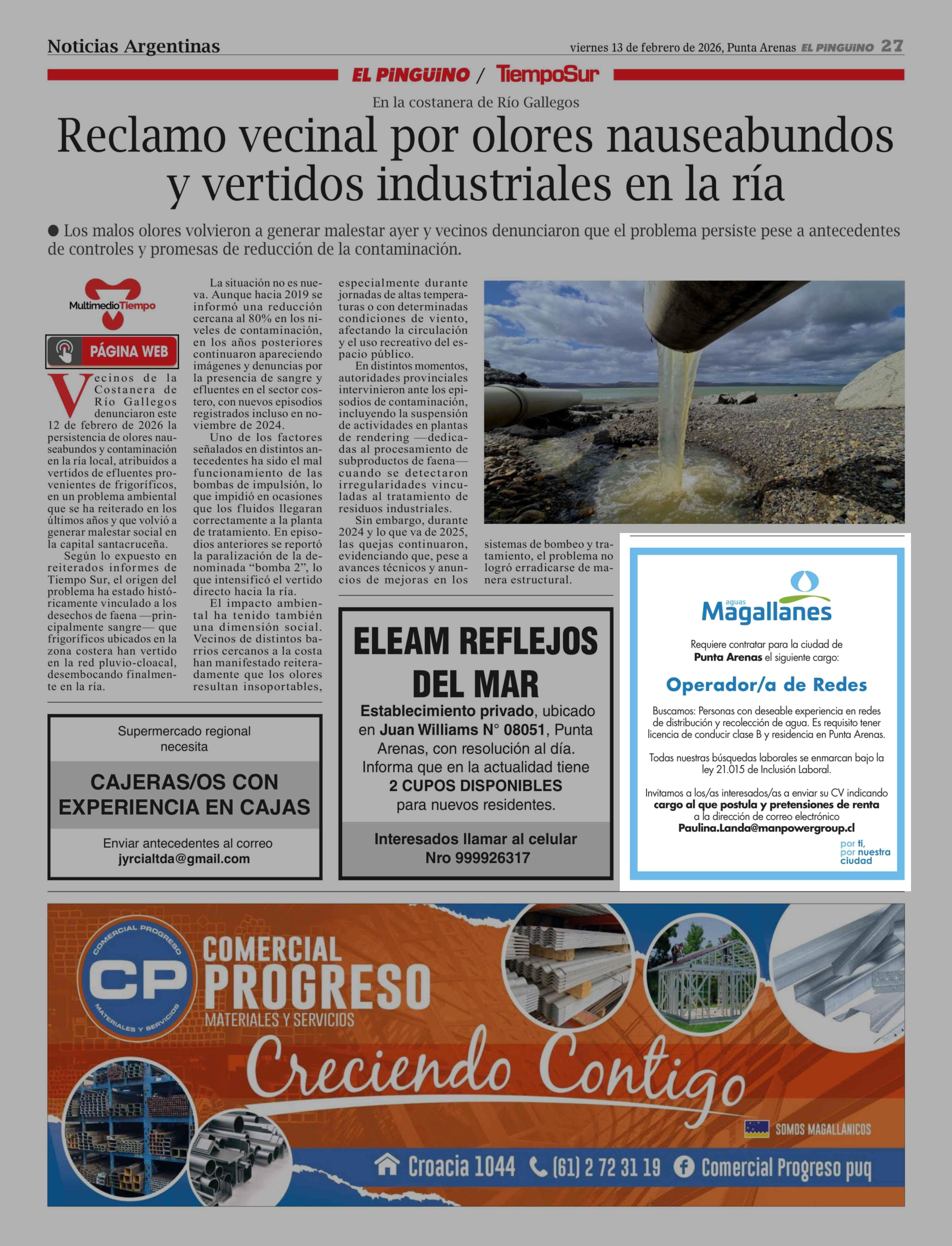 Fecha: 13-02-2026 Sector: Aviso Empleo Región: Región de Magallanes y de la Antártica Chilena