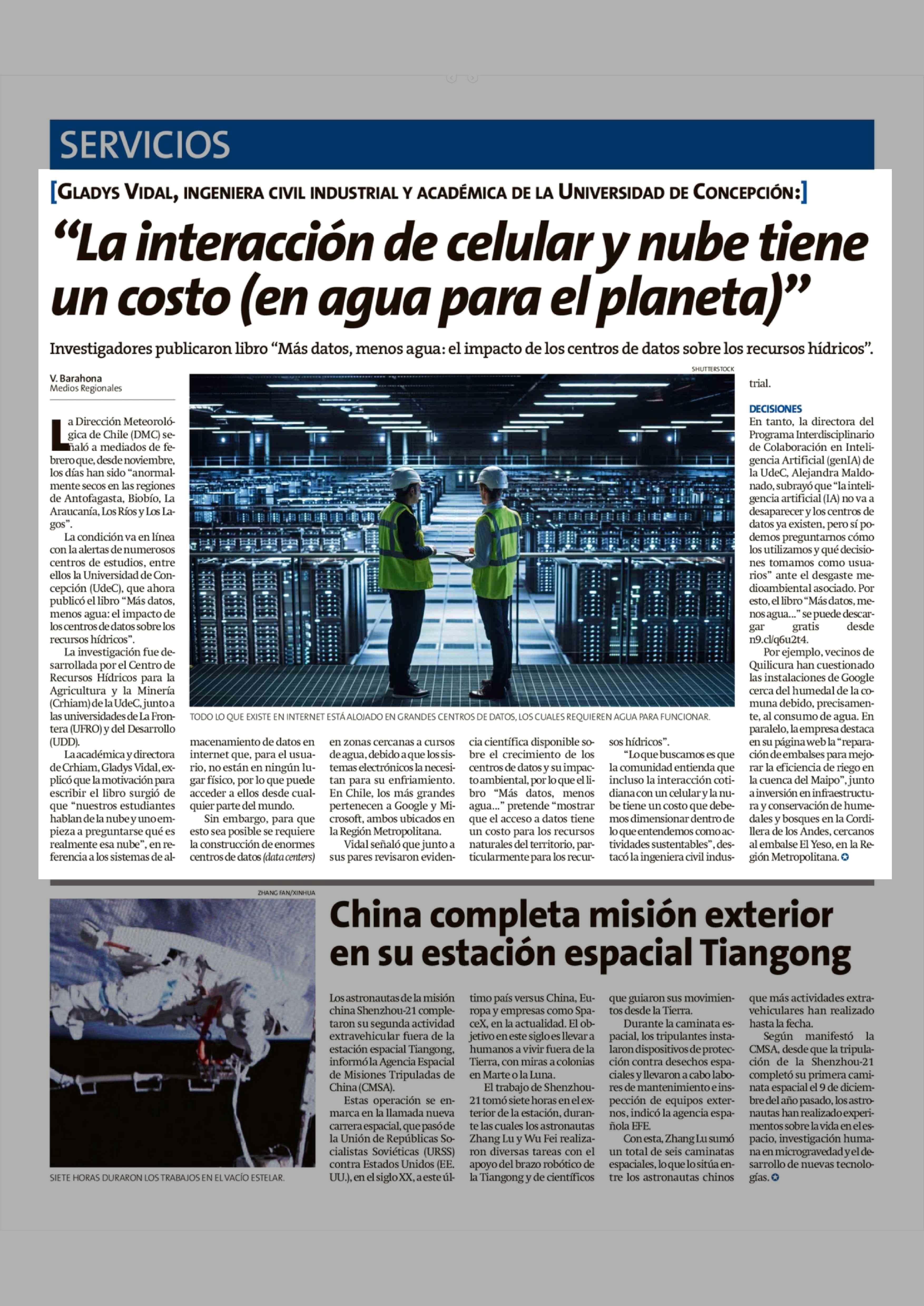Título: "La interacción de celular y nube tiene un costo (en agua para el planeta)"