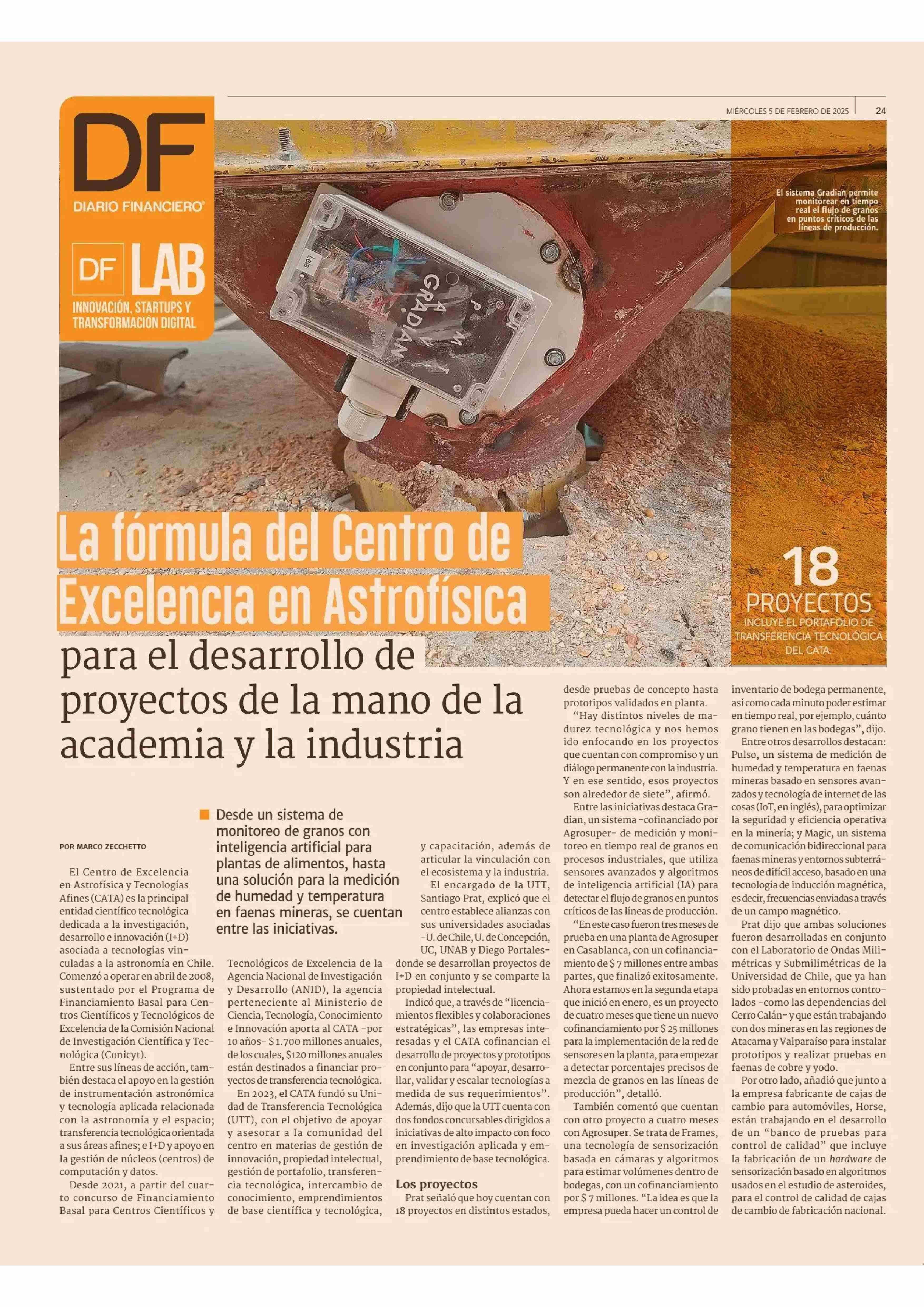 La fórmula del Centro de Excelencia en Astrofísica para el desarrollo de proyectos de la mano de la academia y la industria 05-02-2025 Diario Financiero |