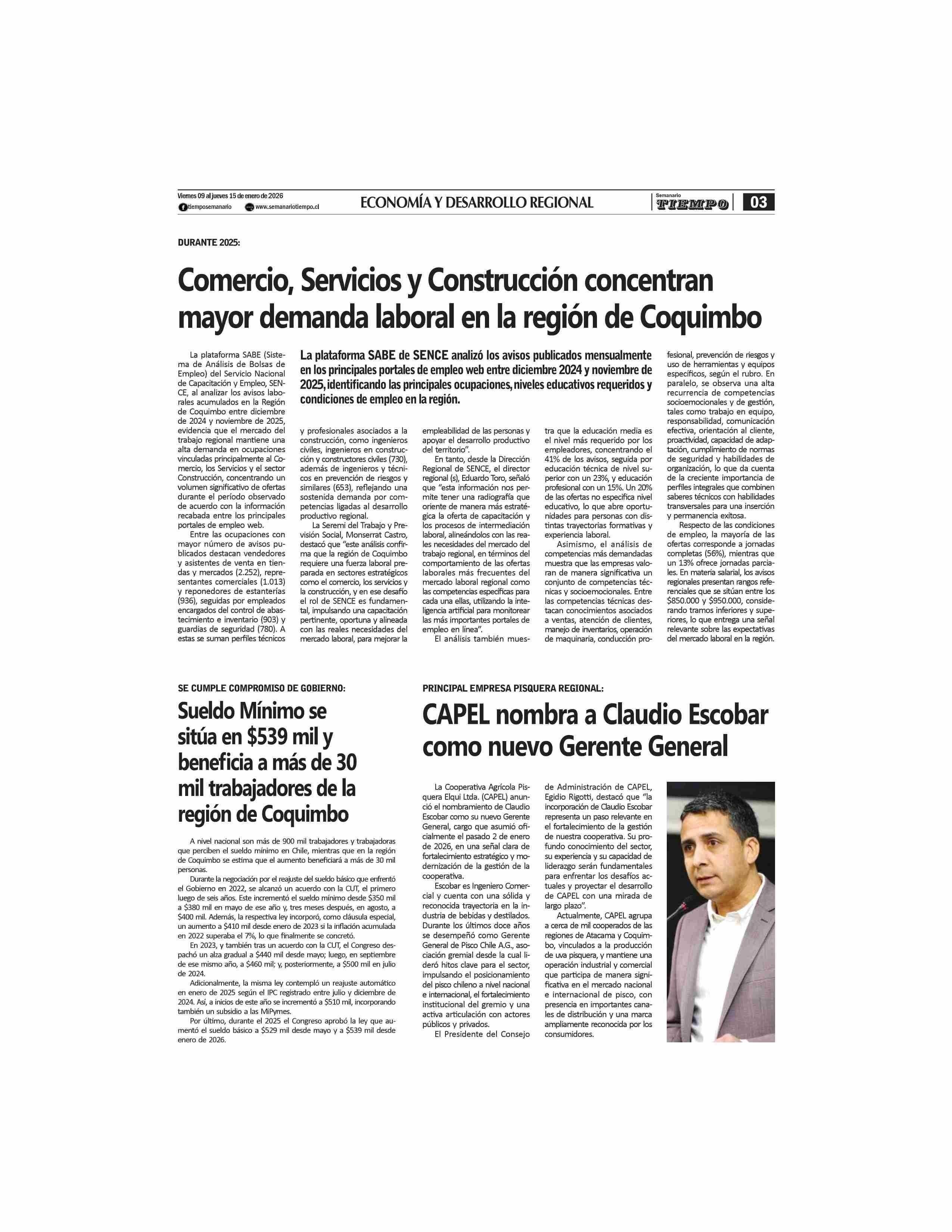 CAPEL nombra a Claudio Escobar como nuevo Gerente General 09-01-2026 Semanario Tiempo |