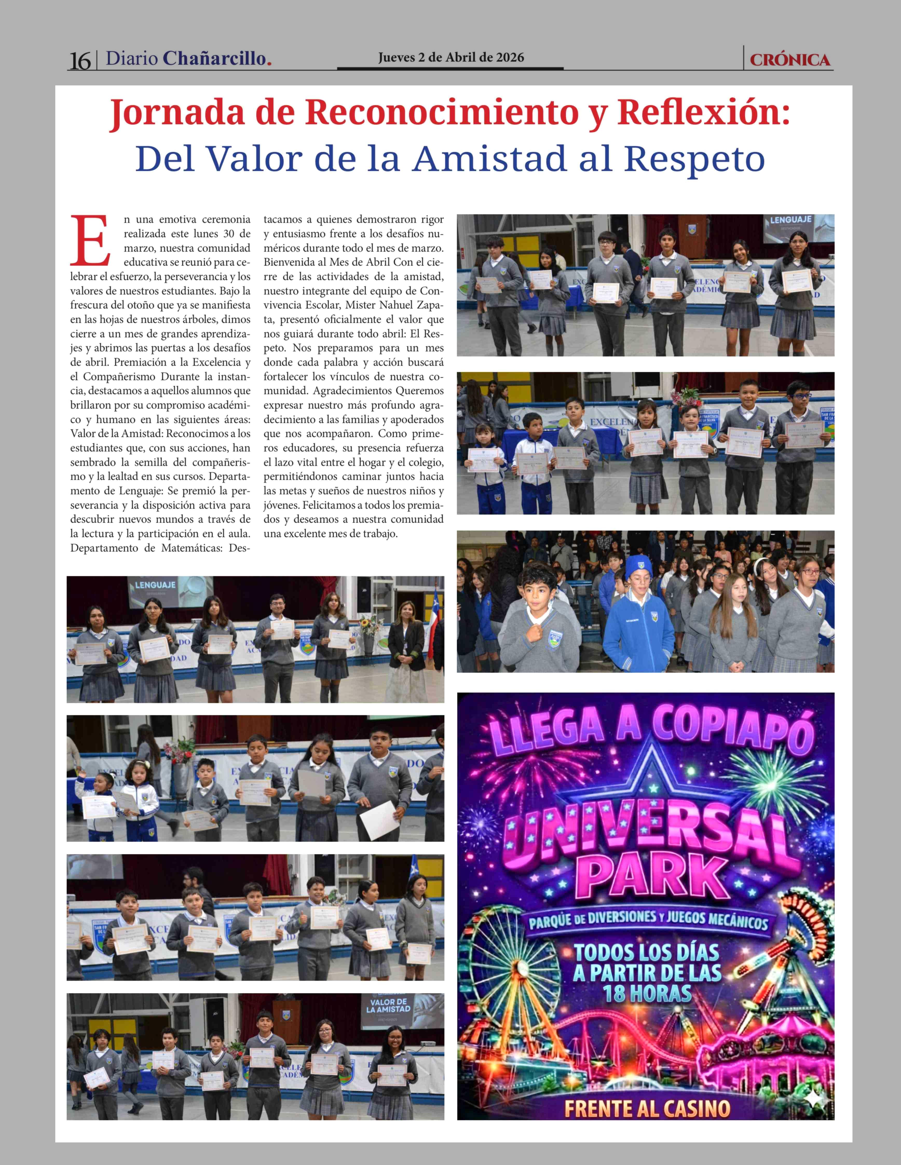 Jornada de Reconocimiento y Reflexión: Del Valor de la Amistad al Respeto 02-04-2026 Diario Chañarcillo |