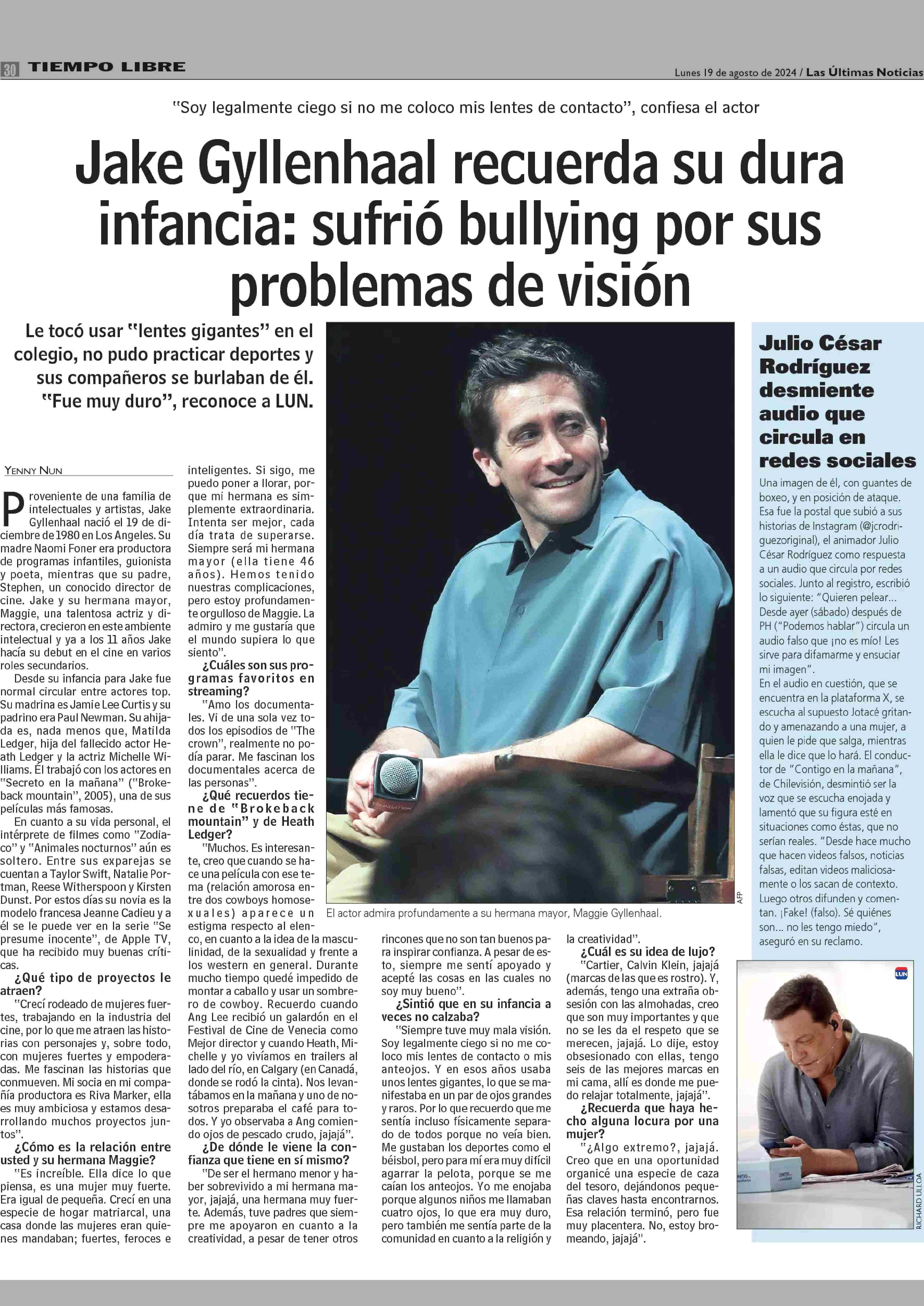 Jake Gyllenhaal recuerda su dura infancia: sufrió bullying por sus problemas de visión 19-08-2024 Las Últimas Noticias |