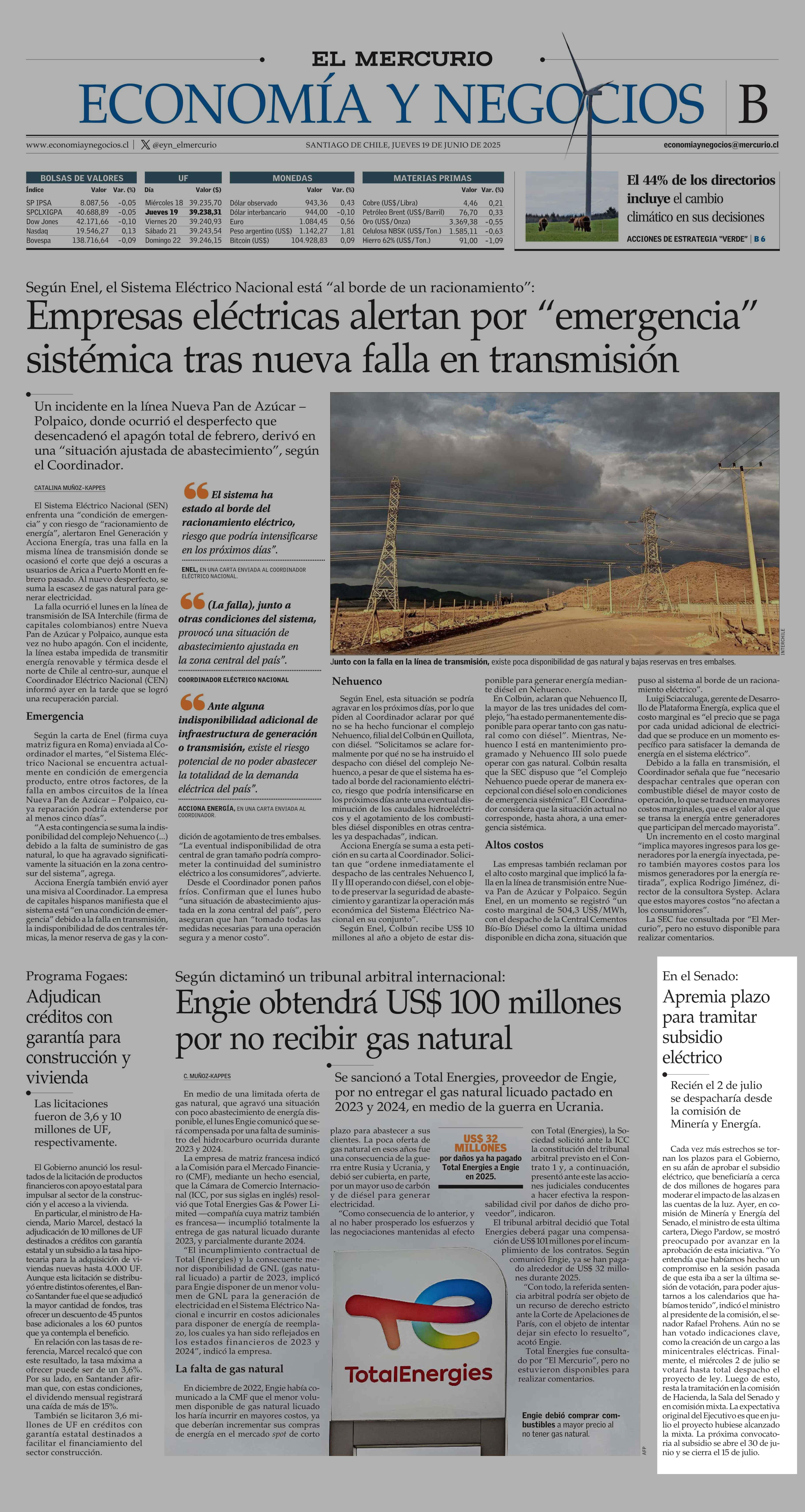 Apremia plazo para tramitar subsidio eléctrico 19-06-2025 El Mercurio |