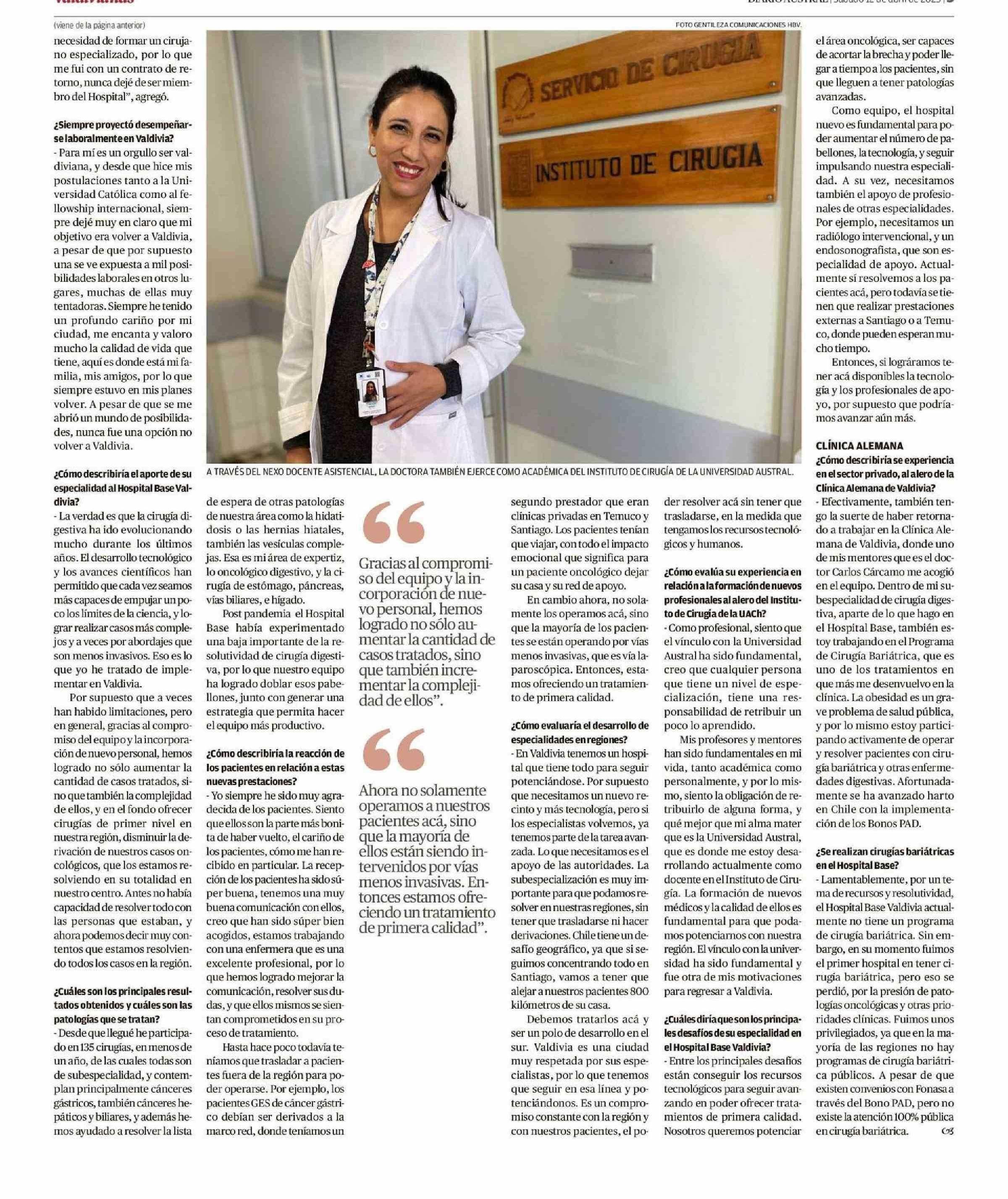 "Estamos resolviendo la totalidad de nuestros casos oncológicos en la región" 12-04-2025 Diario Austral Región de Los Ríos |