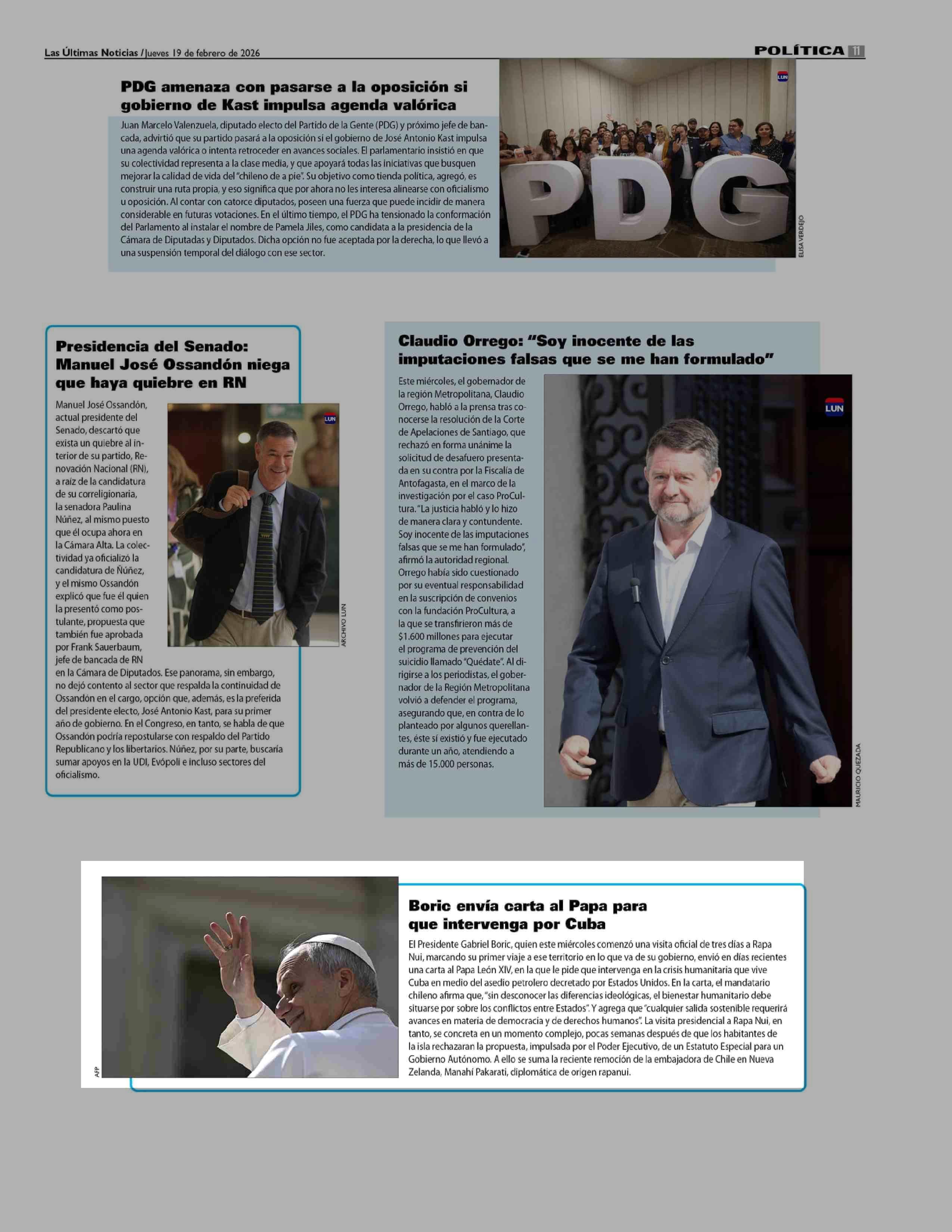 Fecha: 19-02-2026 Sector: Noticia general Región: Región Metropolitana de Santiago