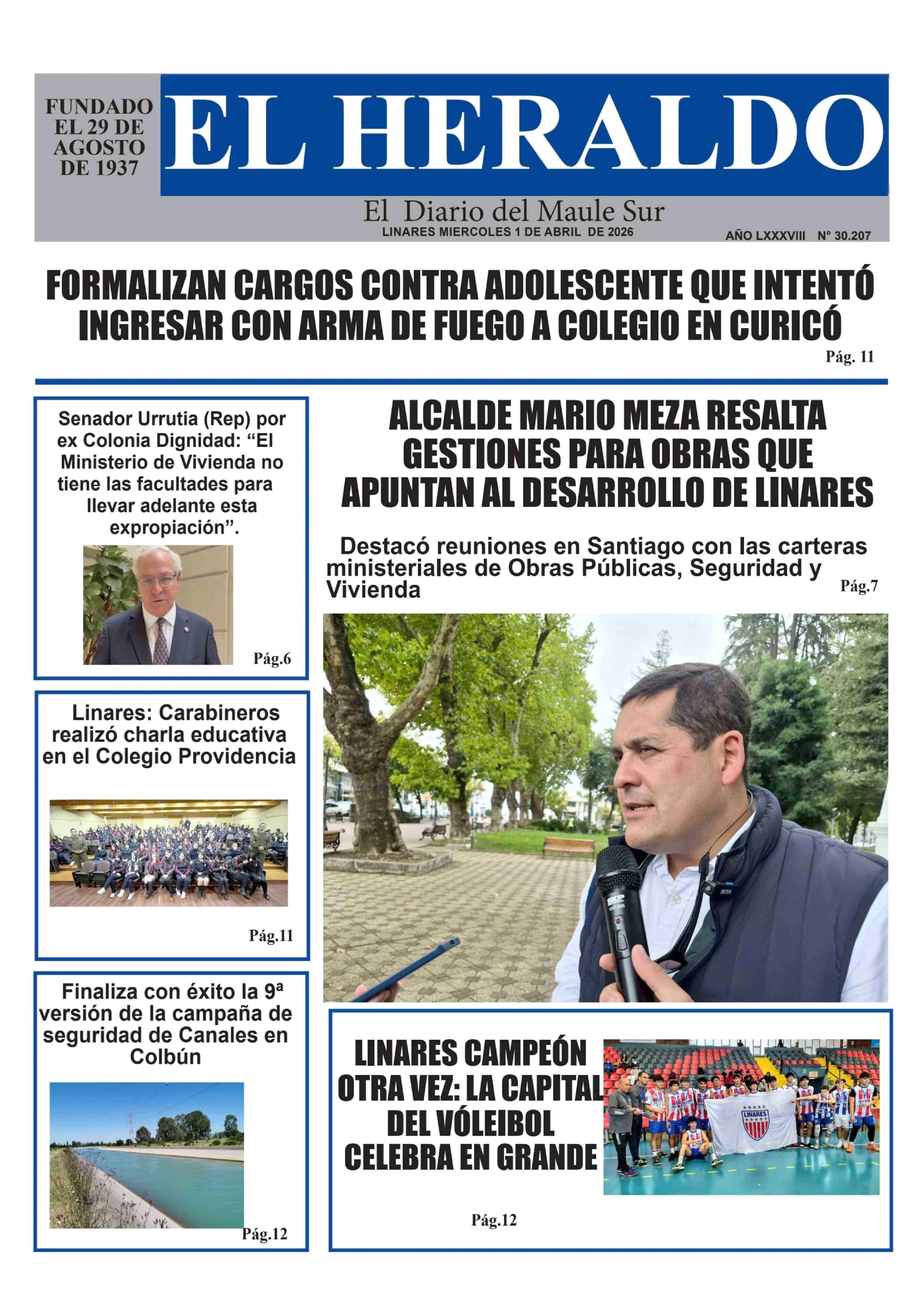 PORTADA EL HERALDO DE LINARES CHILE 01-04-2026 El Heraldo |