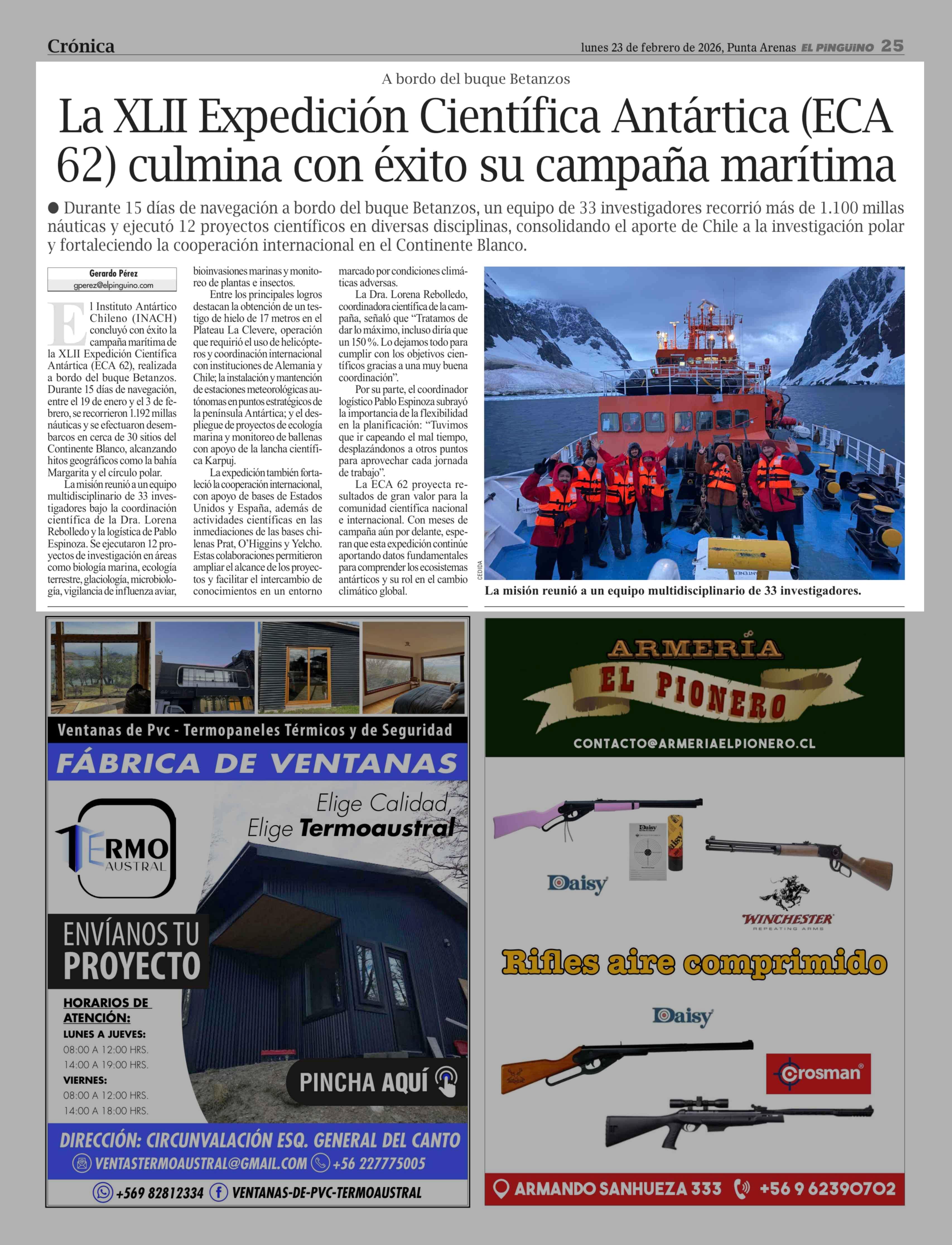 La XLII Expedición Científica Antártica (ECA 62) culmina con éxito su campaña marítima 23-02-2026 El Pingüino |