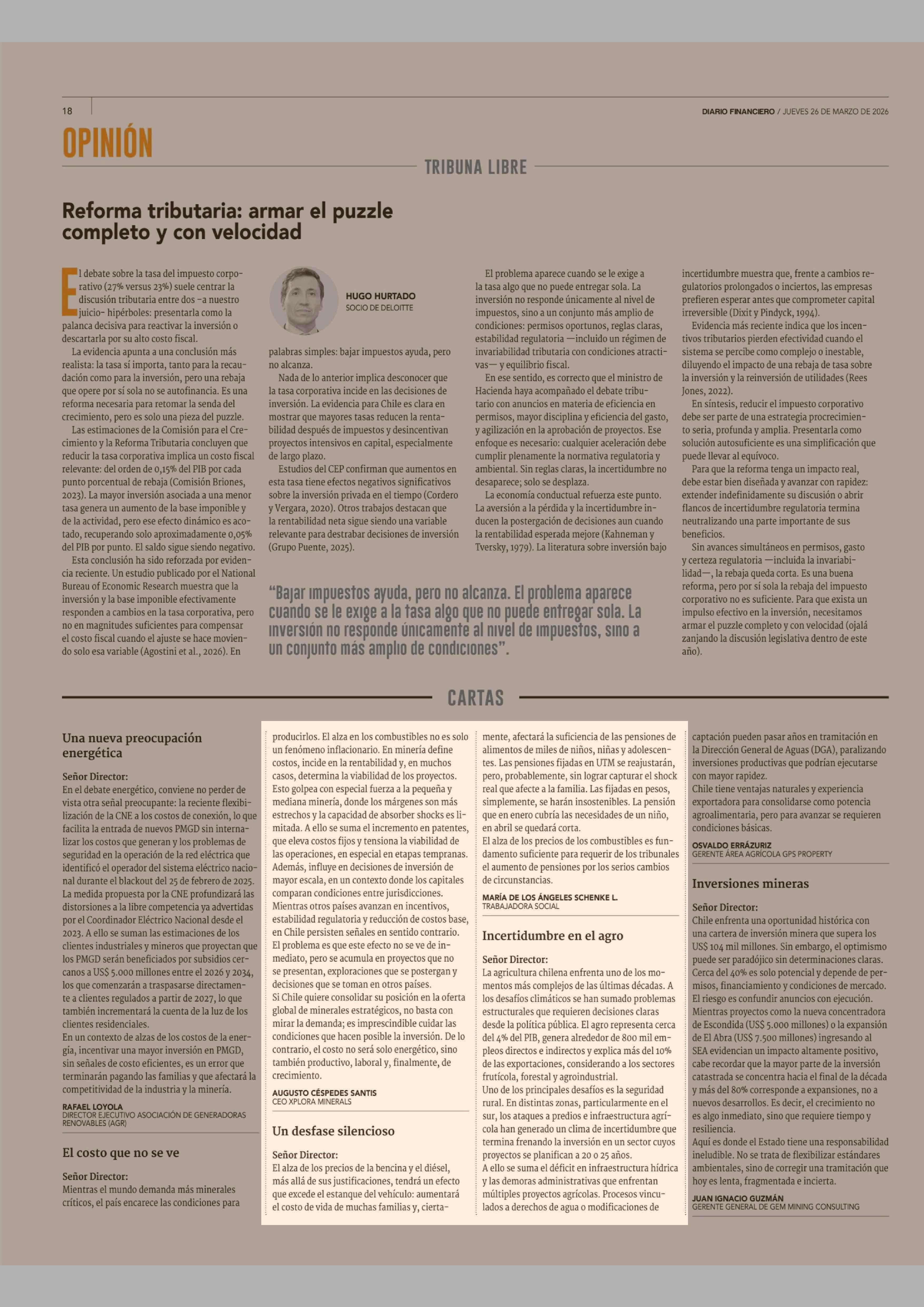 Cartas: Un desfase silencioso 26-03-2026 Diario Financiero |