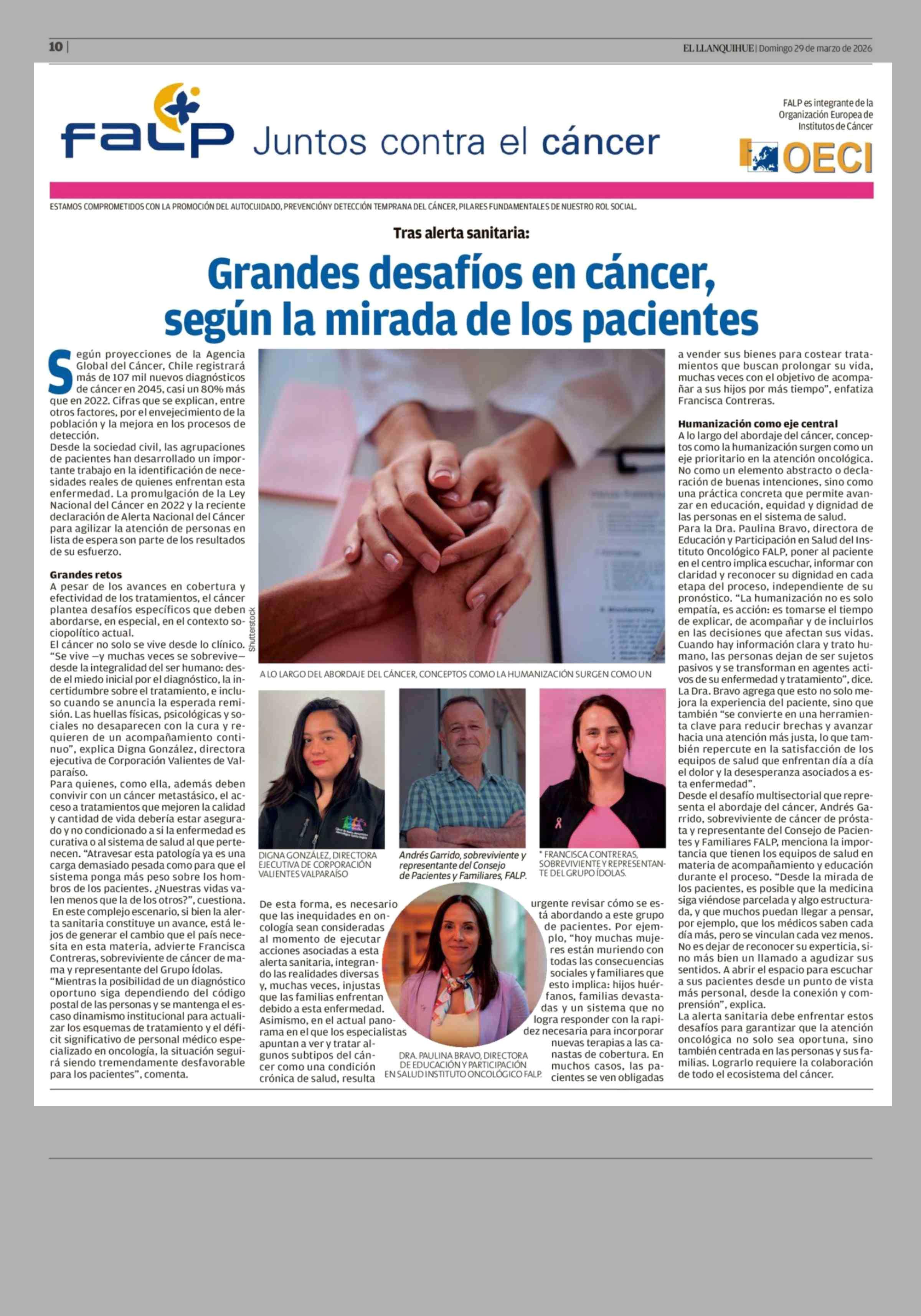 Grandes desafíos en cáncer, según la mirada de los pacientes 29-03-2026 El Llanquihue |