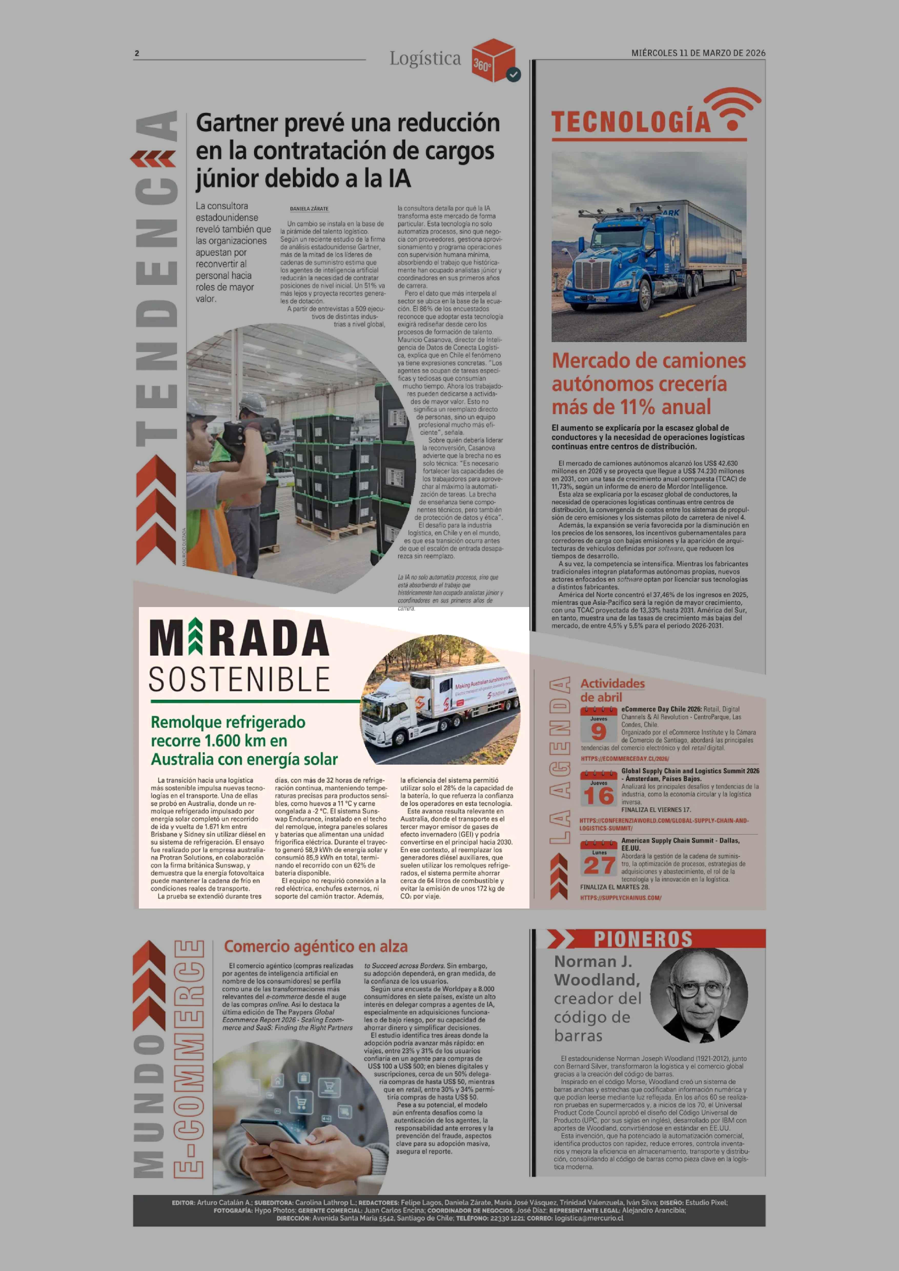 Remolque refrigerado recorre 1.600 km en Australia con energía solar 11-03-2026 El Mercurio |