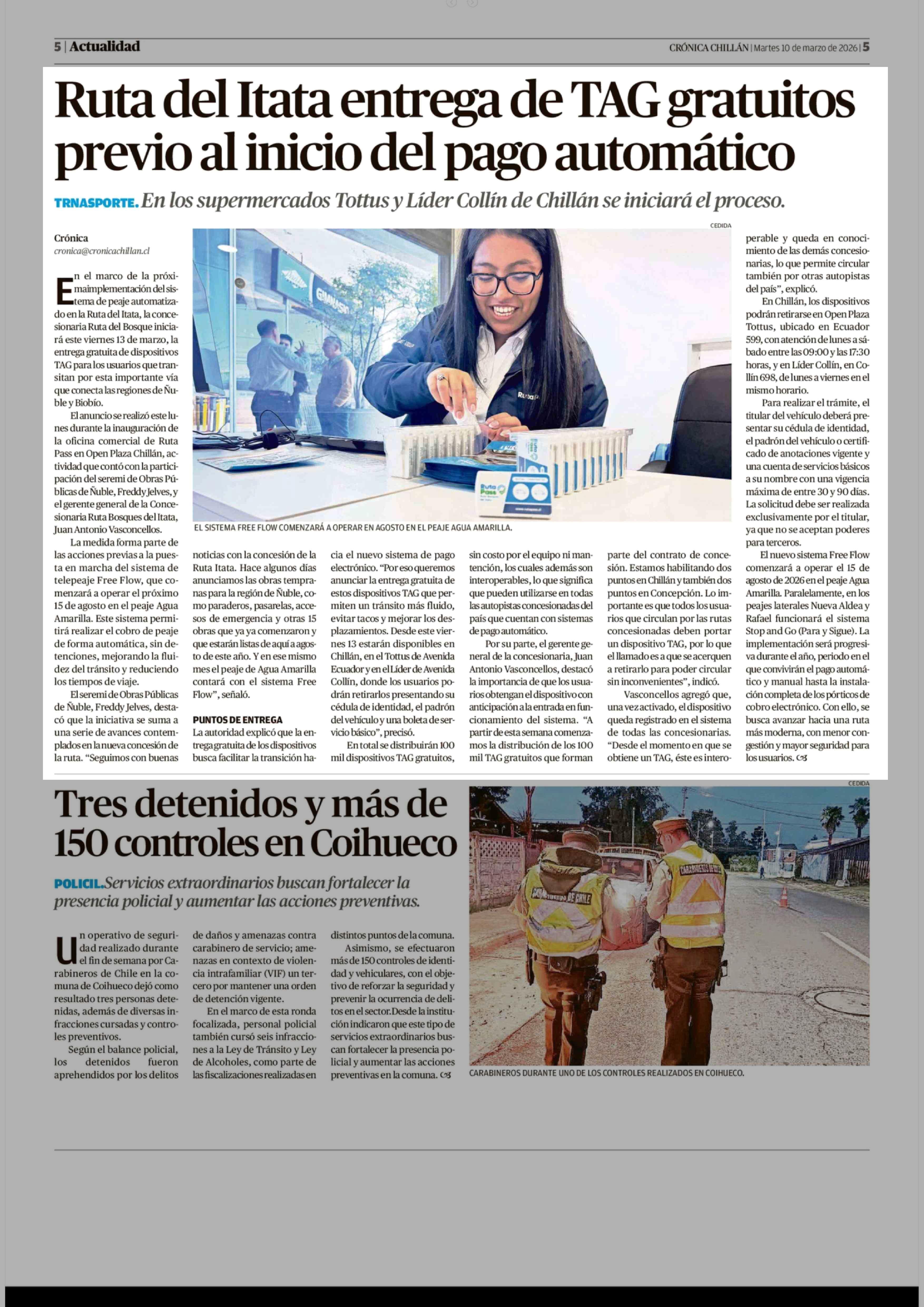 Título: Ruta del Itata entrega de TAG gratuitos previo al inicio del pago automático