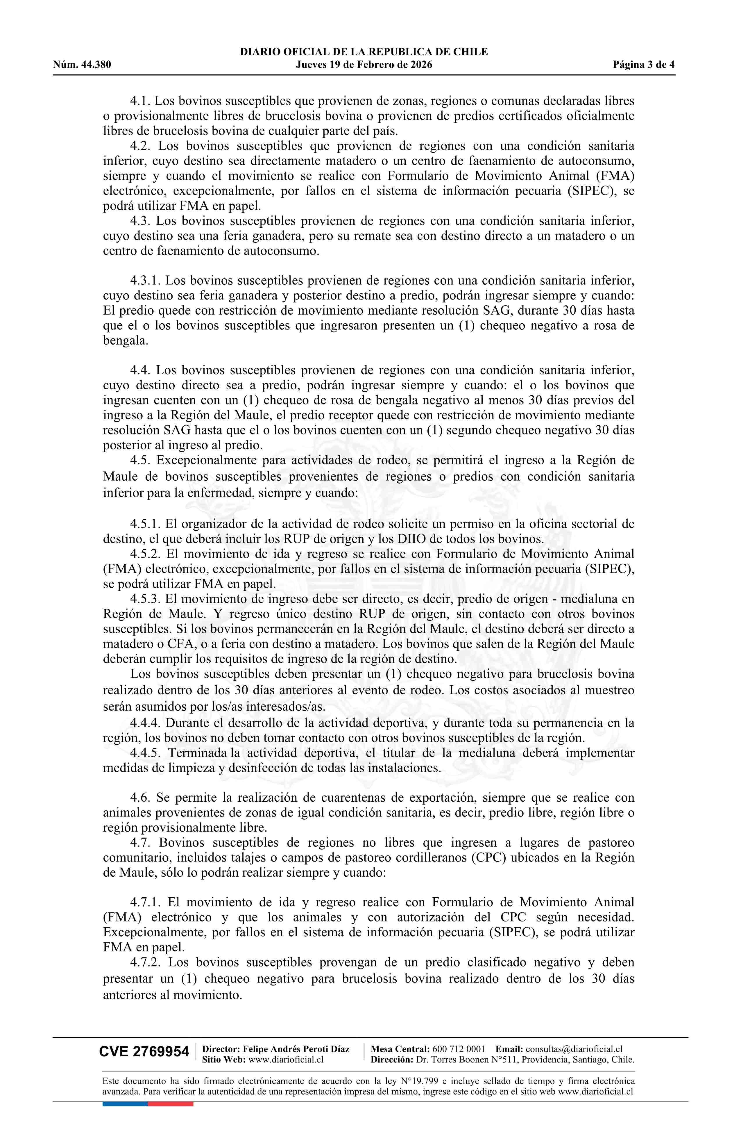 Resolución exenta número 506, de 2026.- Declara erradicada la brucelosis bovina en la Región del Maule y la incorpora a la zona provisionalmente libre de la enfermedad 19-02-2026 Diario Oficial Edición Electrónica |