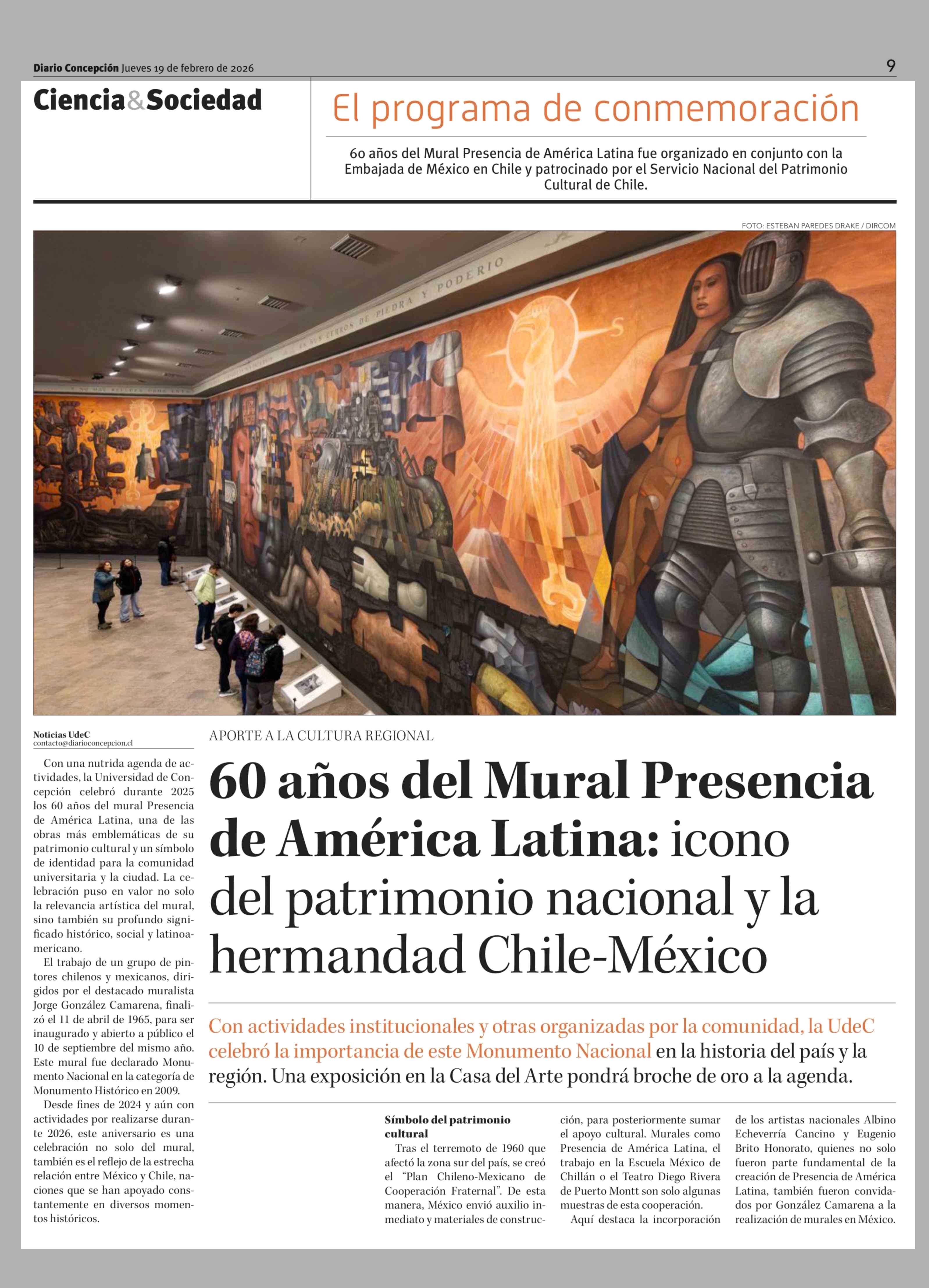 60 Años del Mural Presencia de América Latina: icono del patrimonio nacional y la hermandad Chile-México 19-02-2026 Diario Concepción |