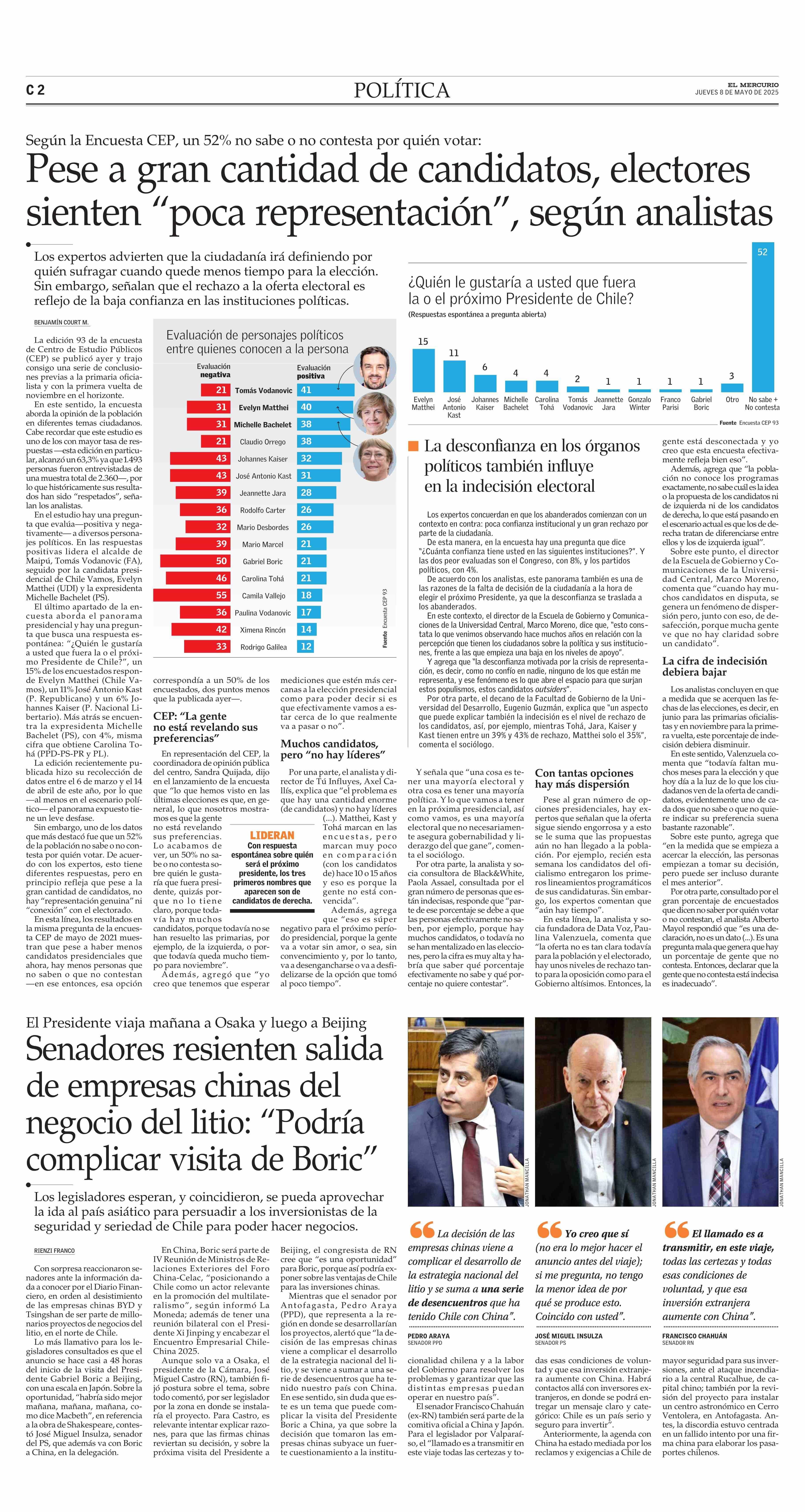 Pese a gran cantidad de candidatos, electores sienten “poca representación”, según analistas 08-05-2025 El Mercurio |