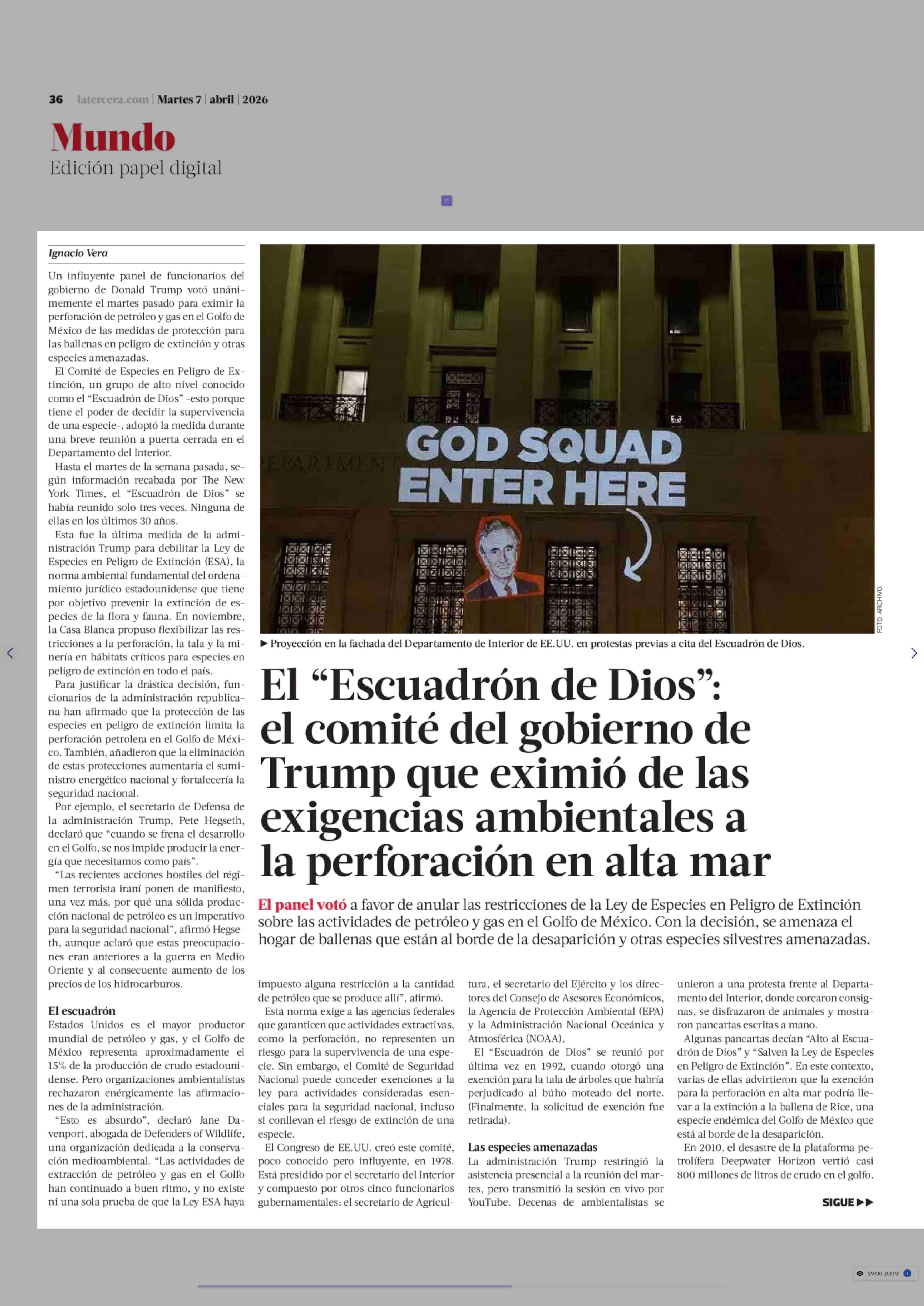 Título: El "Escuadrón de Dios": el comité del gobierno de Trump que eximió de las exigencias ambientales a la perforación en alta mar