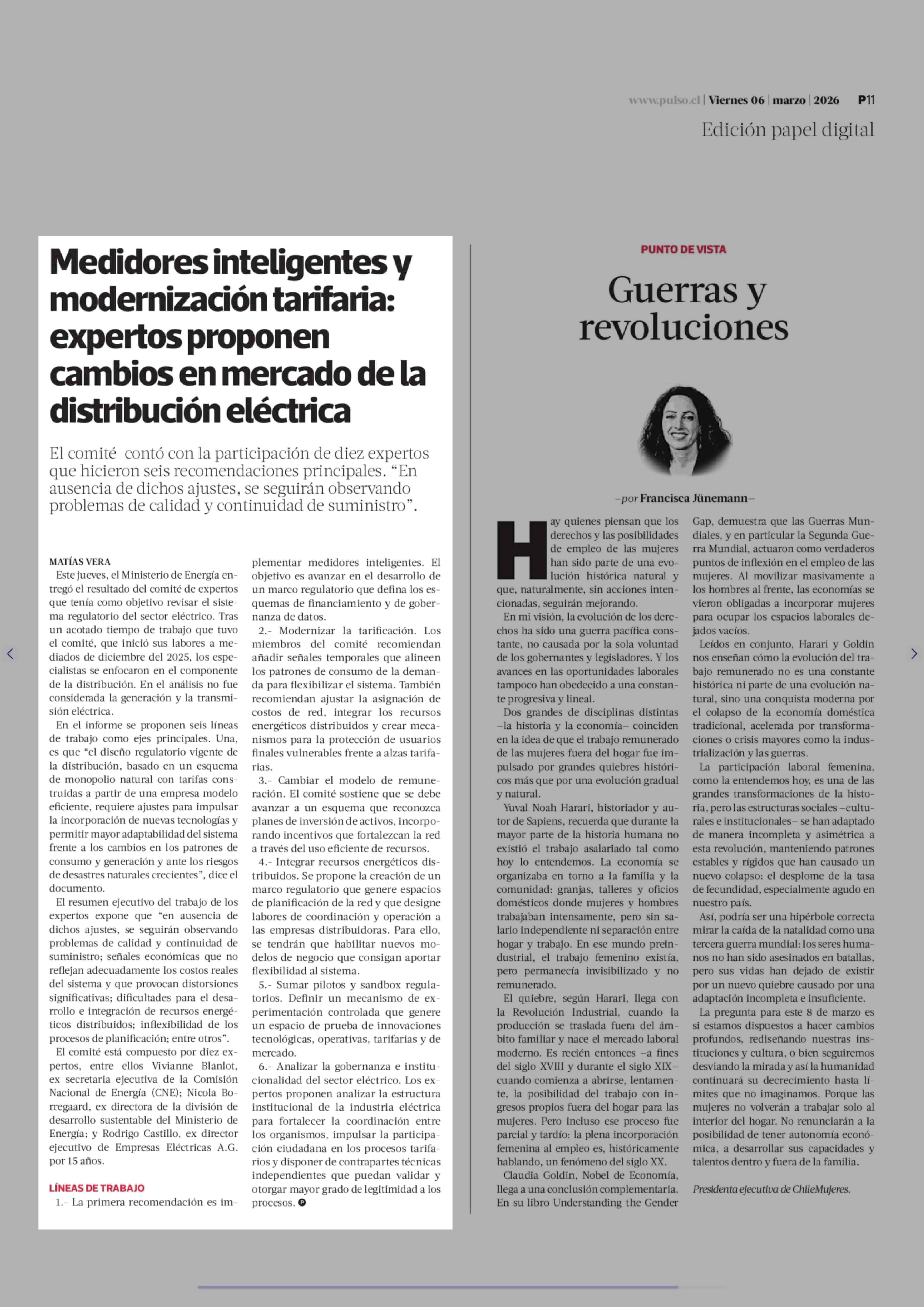 Medidores inteligentes y modernización tarifaria: expertos proponen cambios en mercado de la distribución eléctrica 06-03-2026 La Tercera |