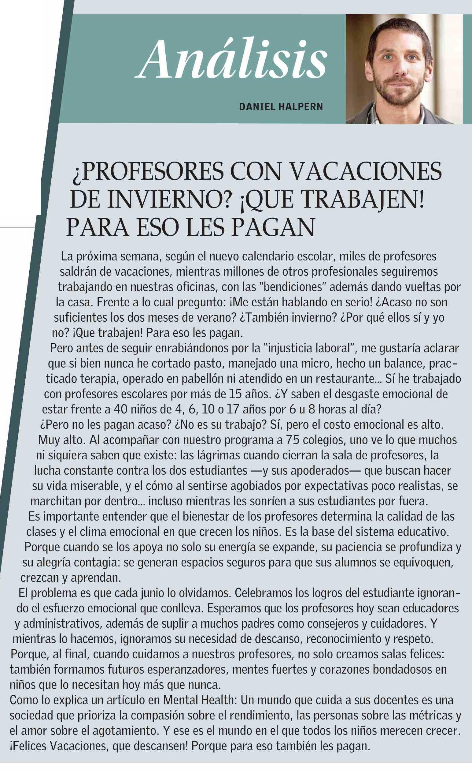 COLUMNAS DE OPINIÓN: ¿PROFESORES CON VACACIONES DE INVIERNO? ¡QUE TRABAJEN! PARA ESO LES PAGAN 12-06-2025 El Mercurio |
