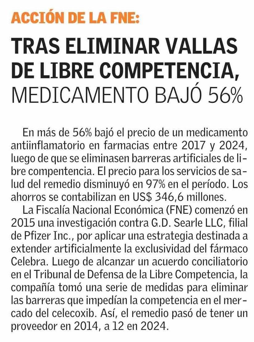 TRAS ELIMINAR VALLAS DE LIBRE COMPETENCIA, MEDICAMENTO BAJÓ 56% 10-01-2026 El Mercurio |