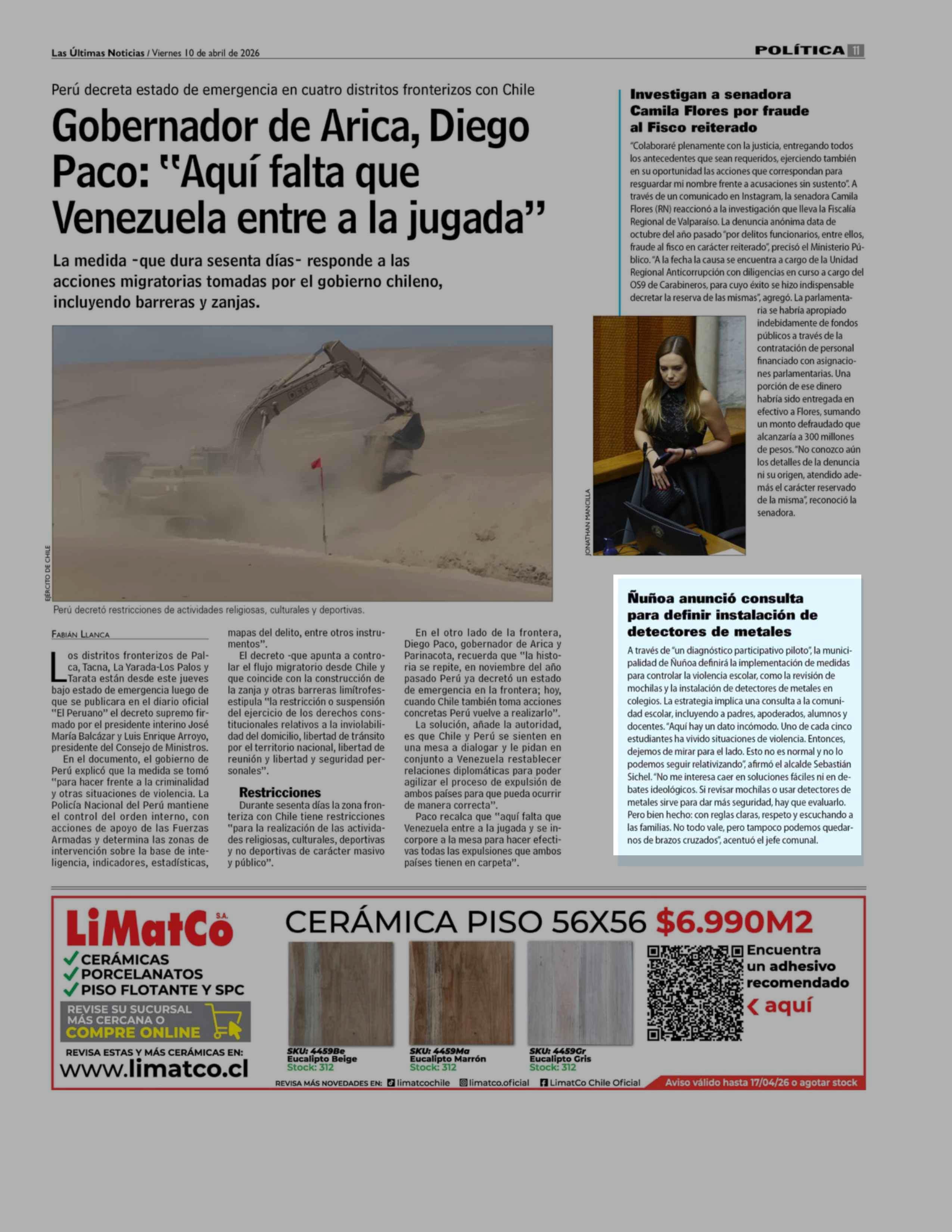 Ñuñoa anunció consulta para definir instalación de detectores de metales 10-04-2026 Las Últimas Noticias |