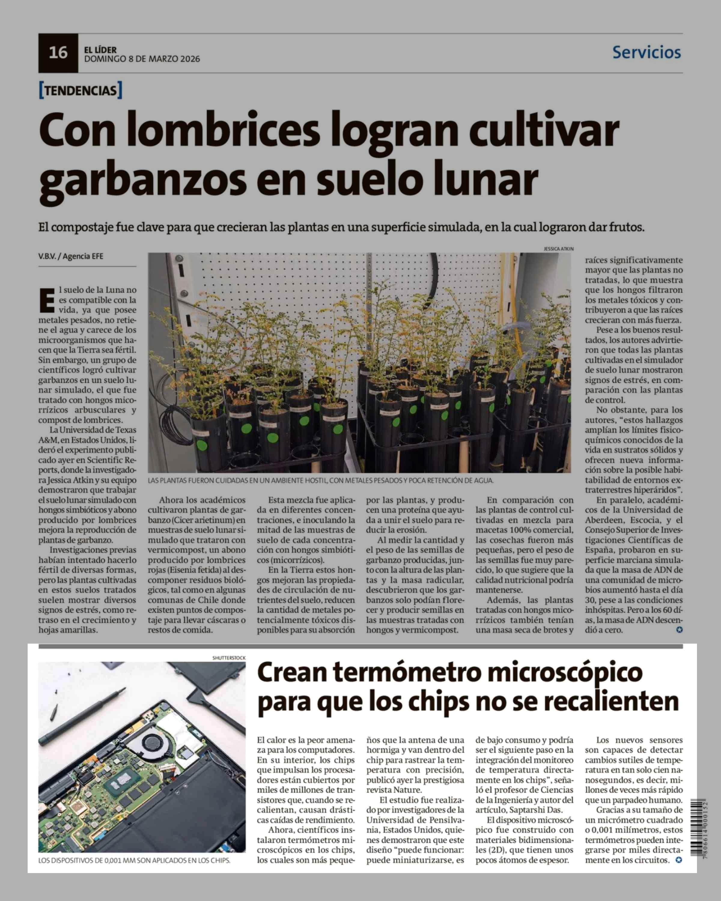 Crean termómetro microscópico para que los chips no se recalienten 08-03-2026 El Líder |