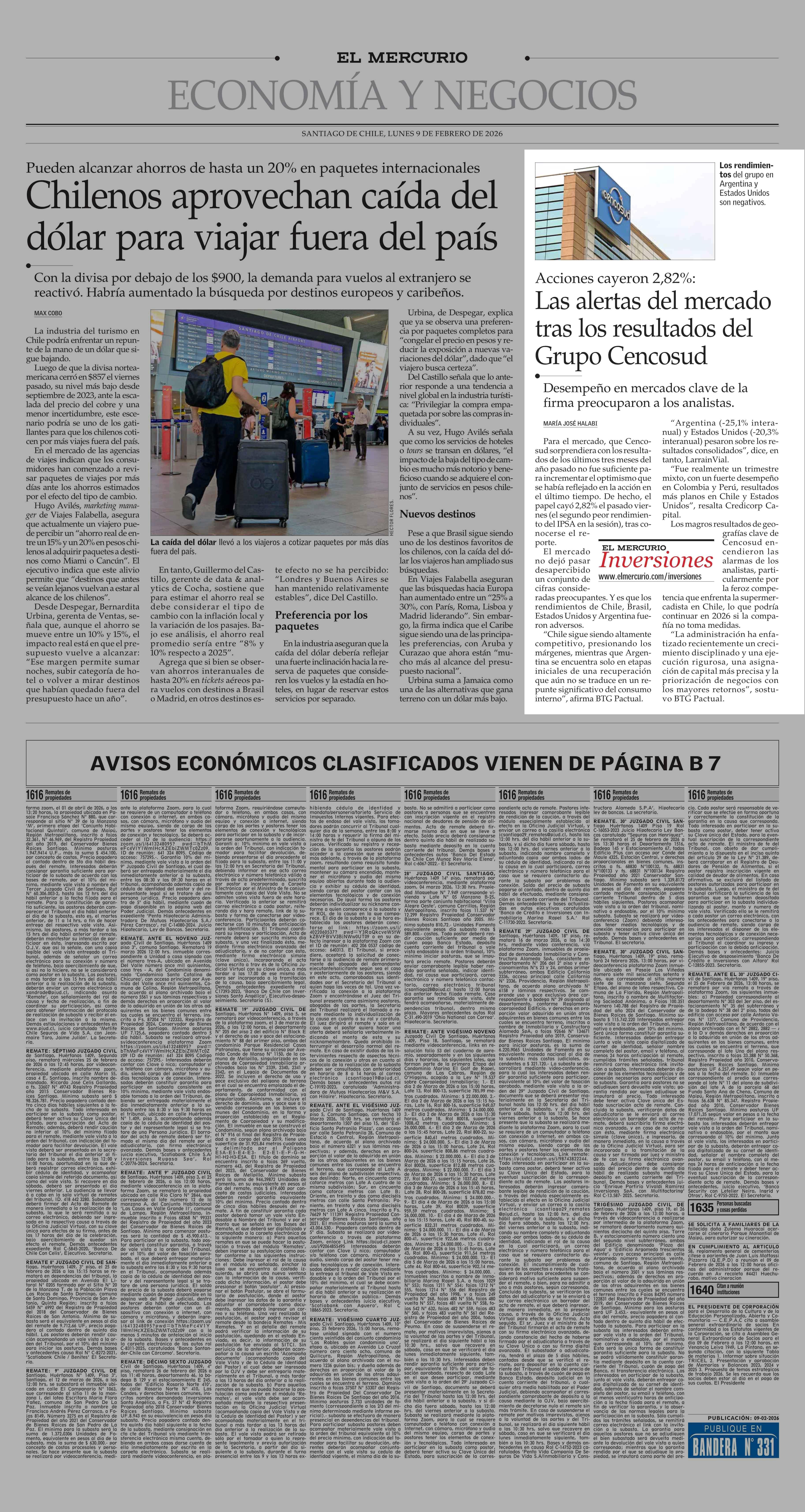 Las alertas del mercado tras los resultados del Grupo Cencosud 09-02-2026 El Mercurio |