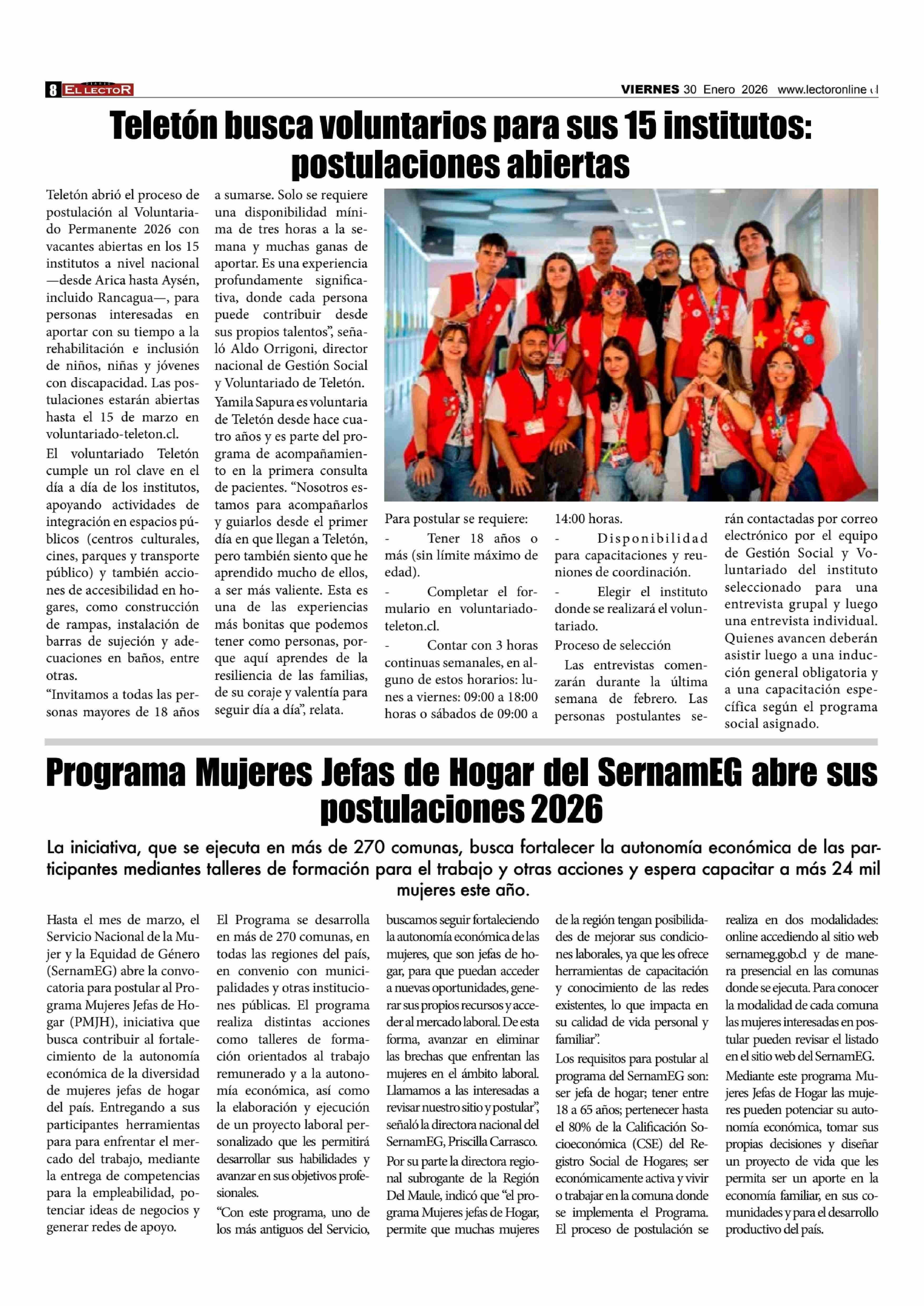 Fecha: 30-01-2026 Sector: Noticia general Región: Región del Maule