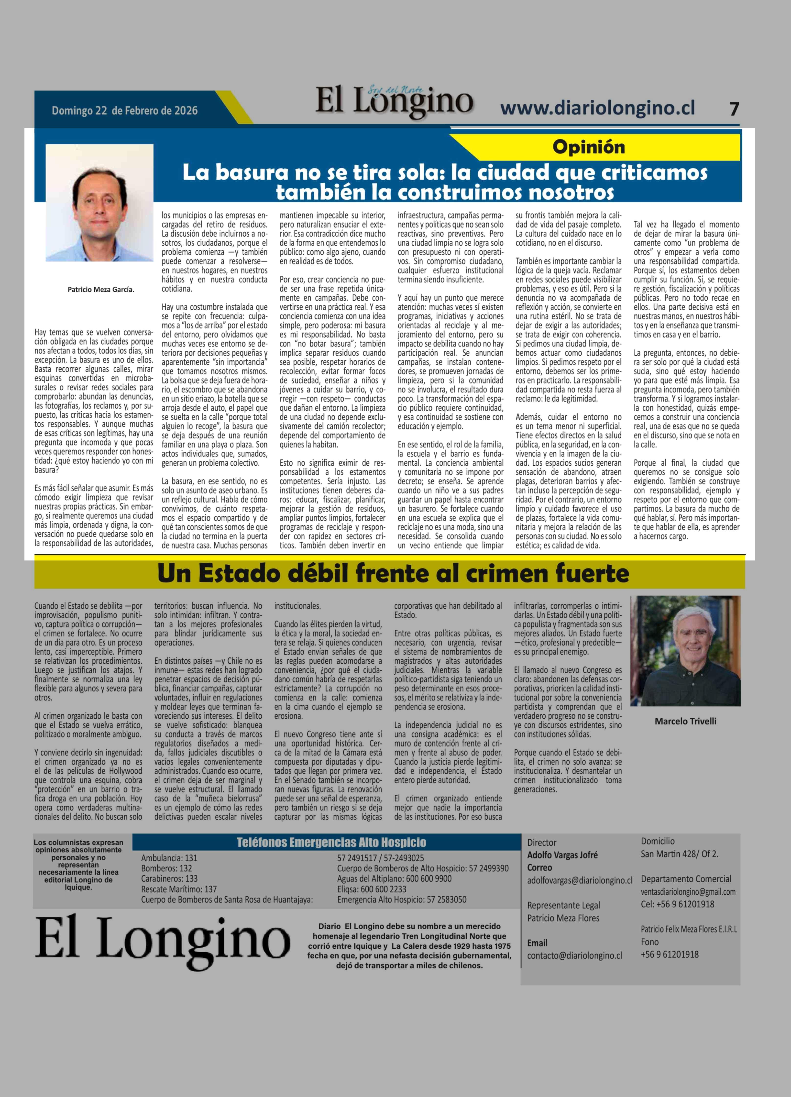 Fecha: 22-02-2026 Sector: Columnas de Opinión Región: Región de Tarapacá