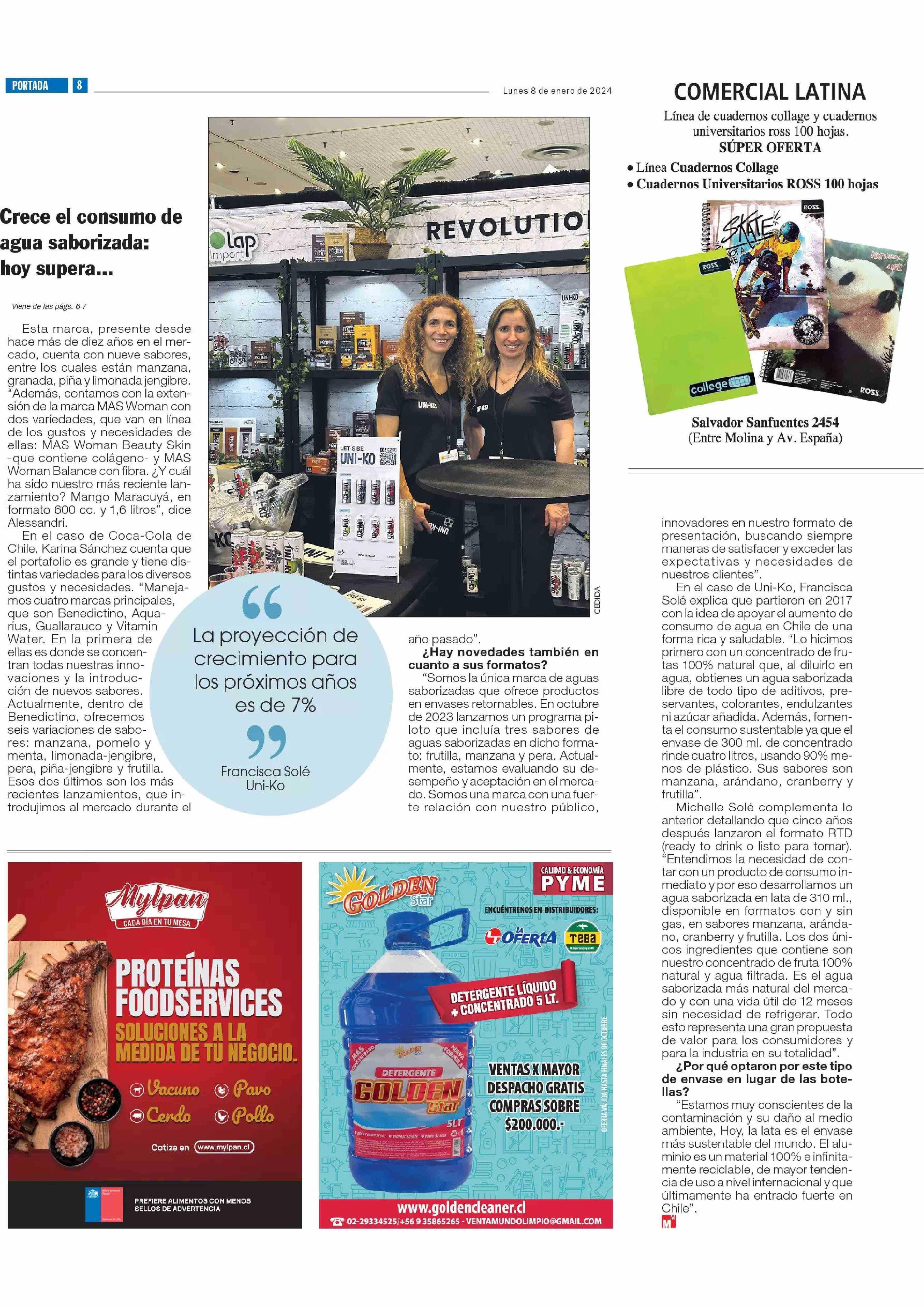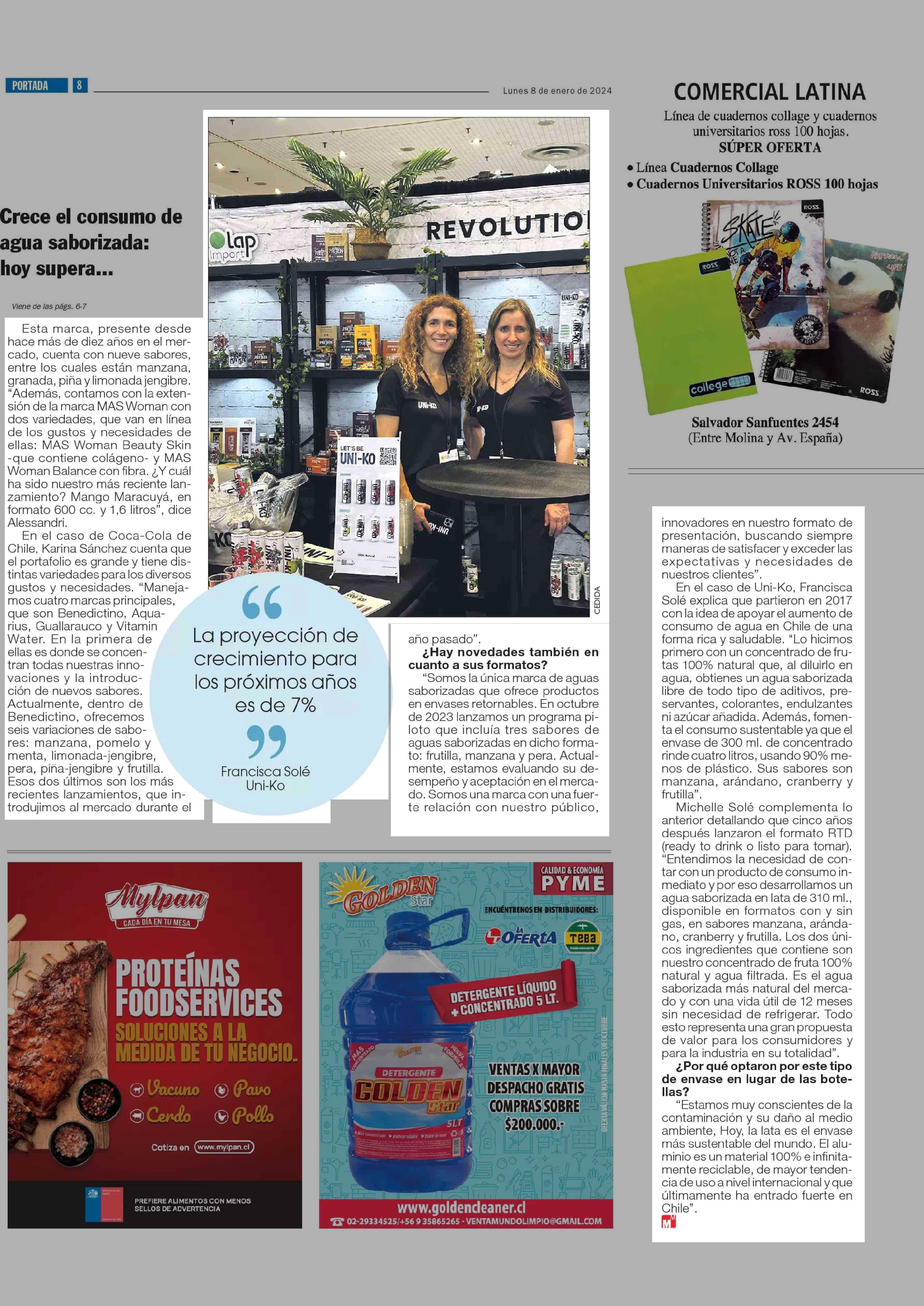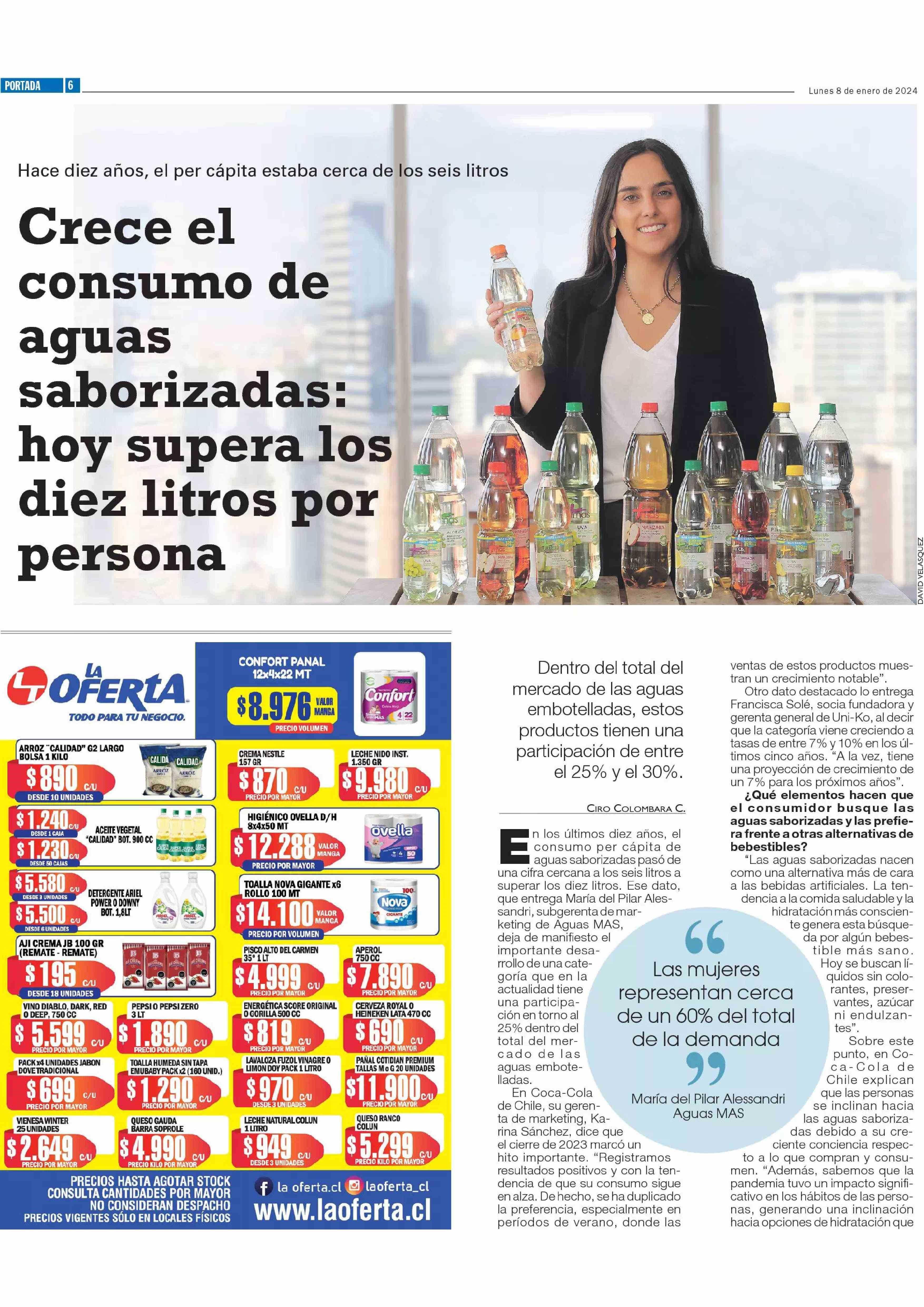 Crece el consumo de aguas saborizadas: hoy supera los diez litros por persona 08-01-2024 Las Últimas Noticias |