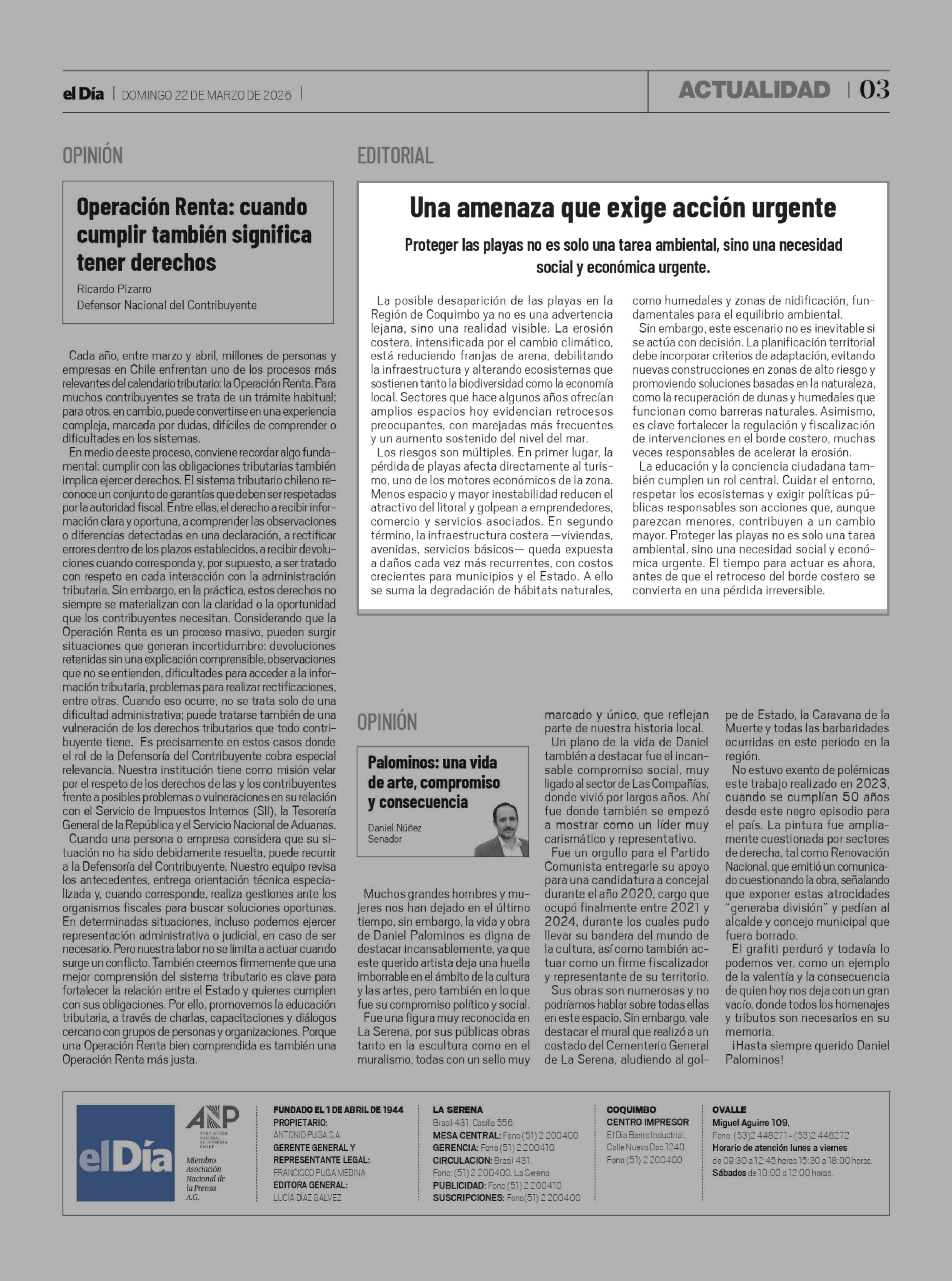 | Fecha: | 22-03-2026 | Sector: | Editorial | Región: | Región de Coquimbo |
