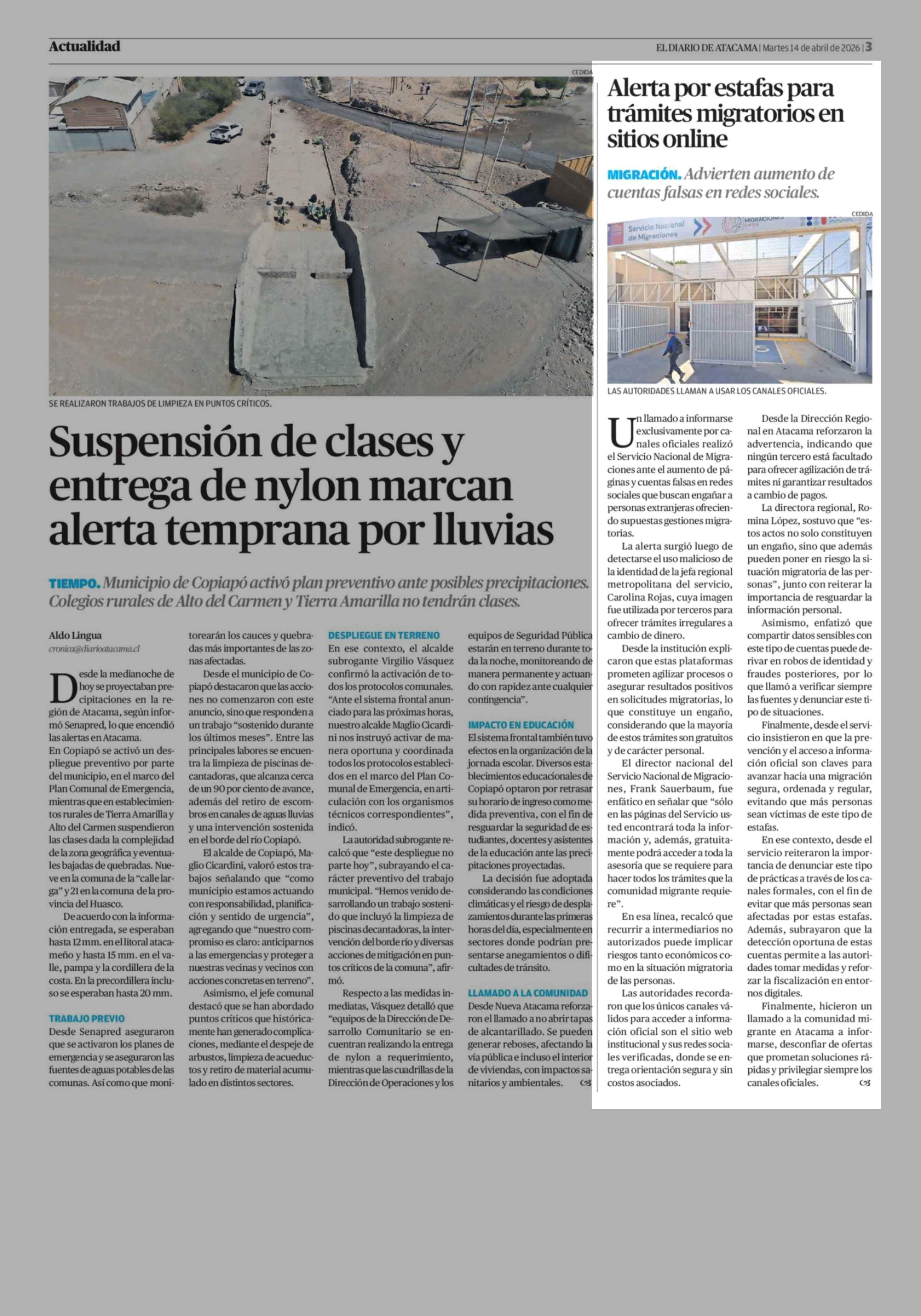 | Fecha: | 14-04-2026 | Sector: | Noticia general | Región: | Región de Atacama |
