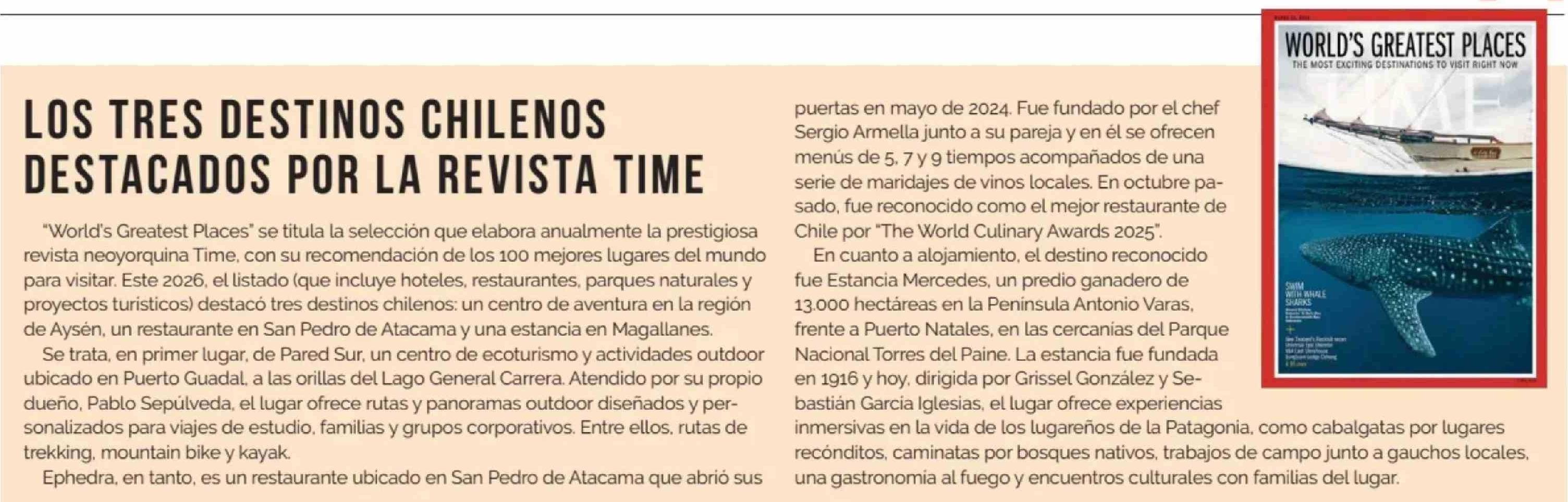LOS TRES DESTINOS CHILENOS DESTACADOS POR LA REVISTA TIME 15-03-2026 Diario Financiero |