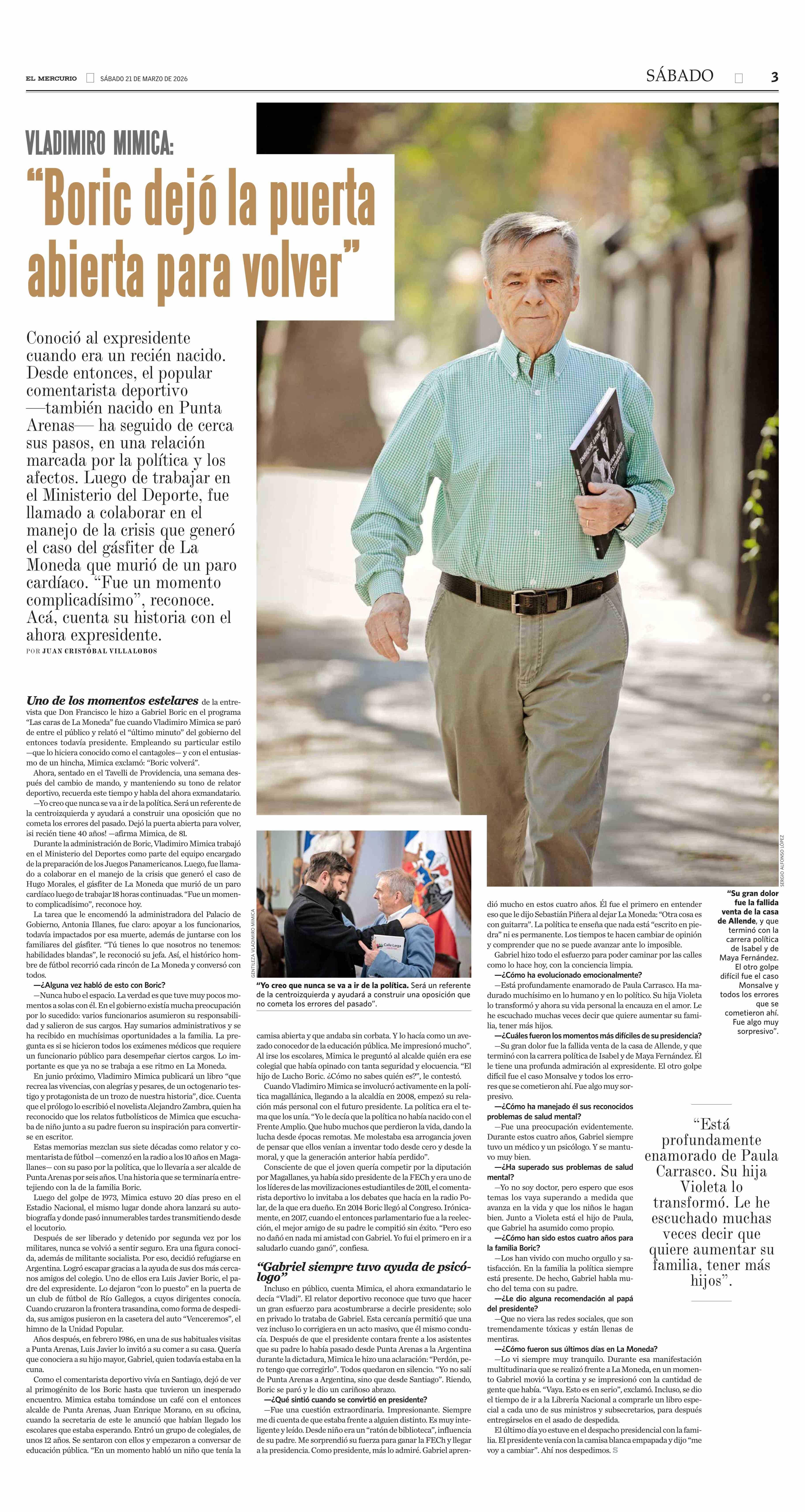 “Boric dejó la puerta abierta para volver” 21-03-2026 El Mercurio |