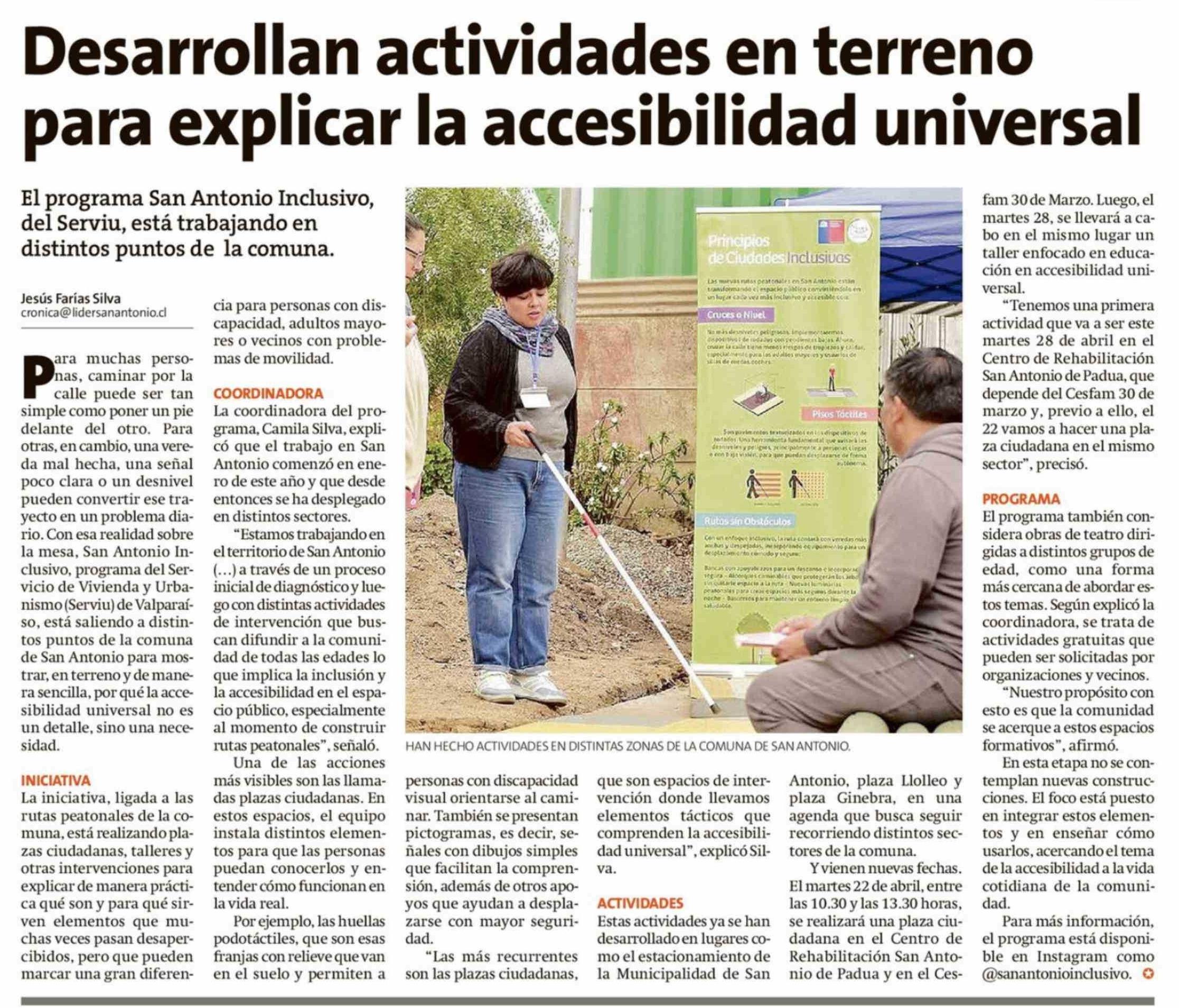 Desarrollan actividades en terreno para explicar la accesibilidad universal 14-04-2026 El Líder |