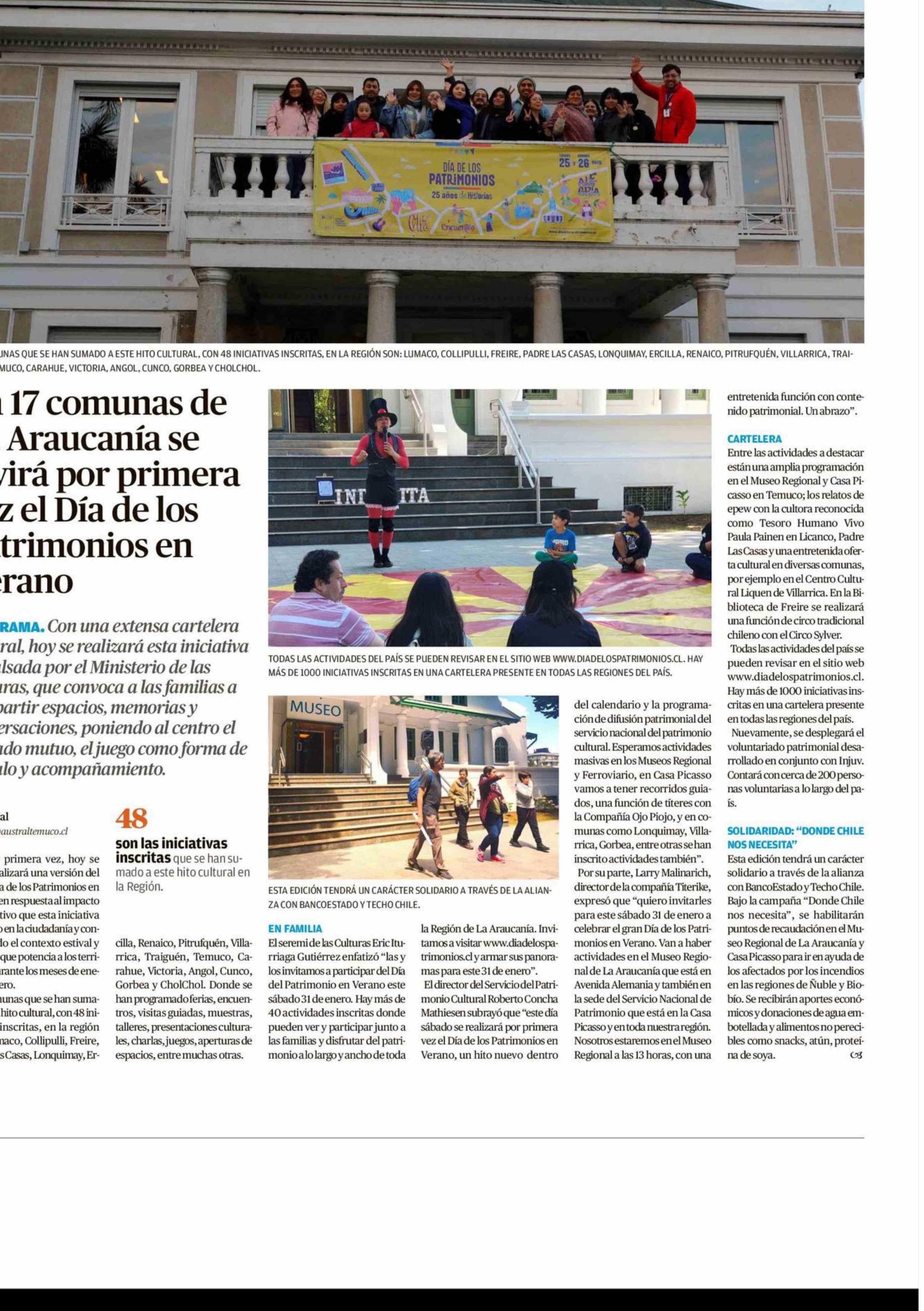 En 17 comunas de La Araucanía se vivirá por primera vez el Día de los Patrimonios en Verano 31-01-2026 El Austral de la Araucanía |