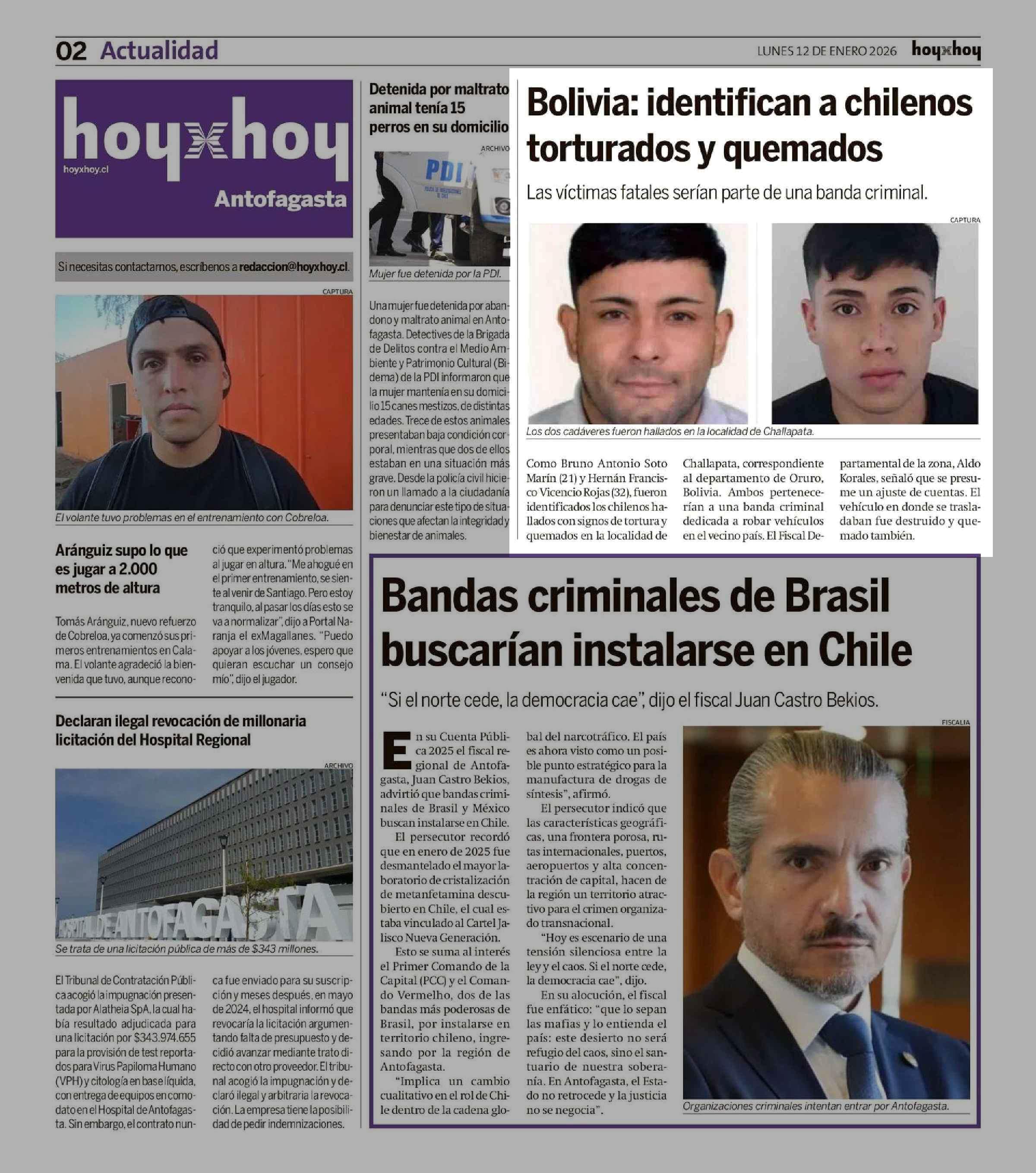 Bolivia: identifican a chilenos torturados y quemados 12-01-2026 Hoy x Hoy Antofagasta |