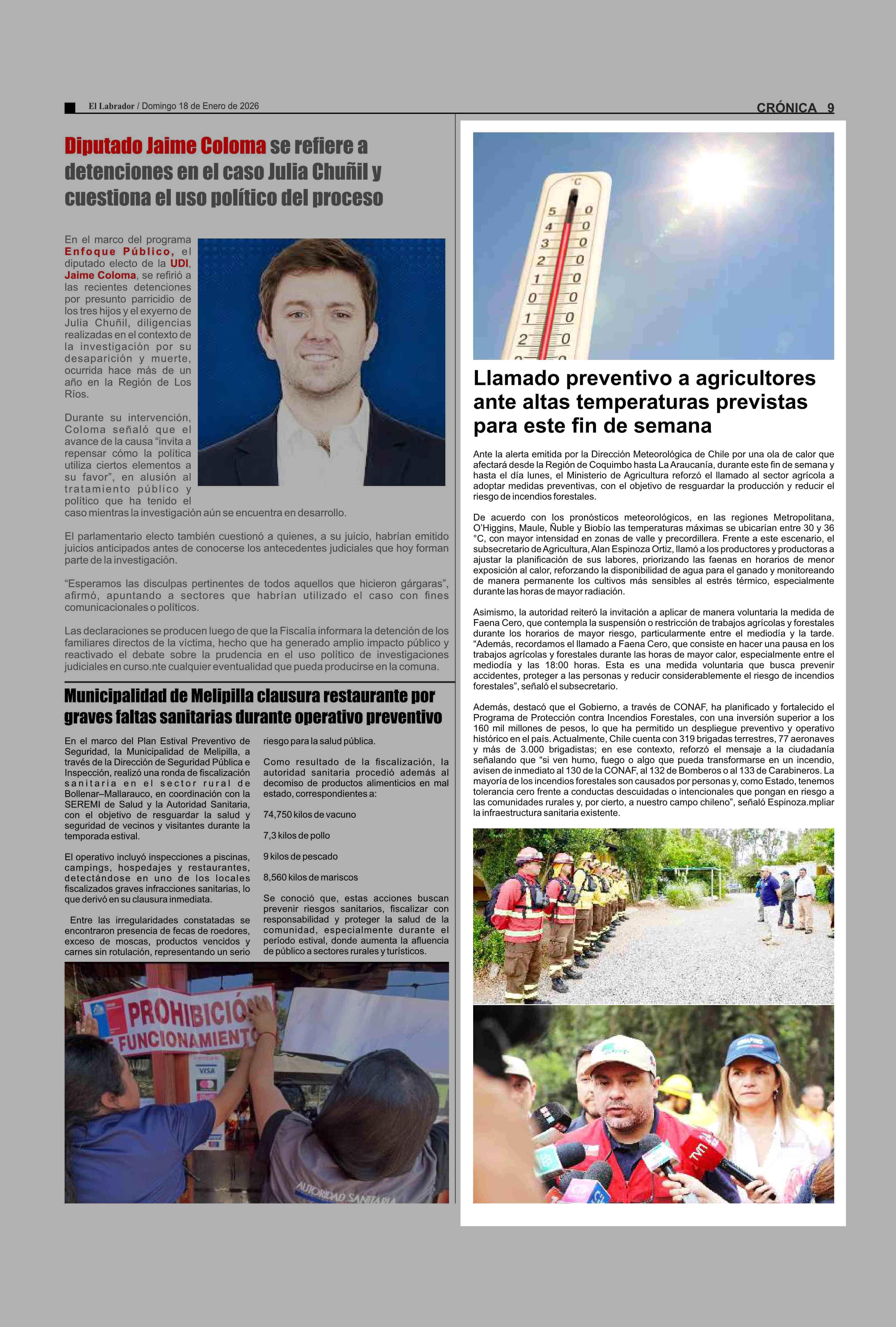 Llamado preventivo a agricultores ante altas temperaturas previstas para este fin de semana 18-01-2026 El Labrador |