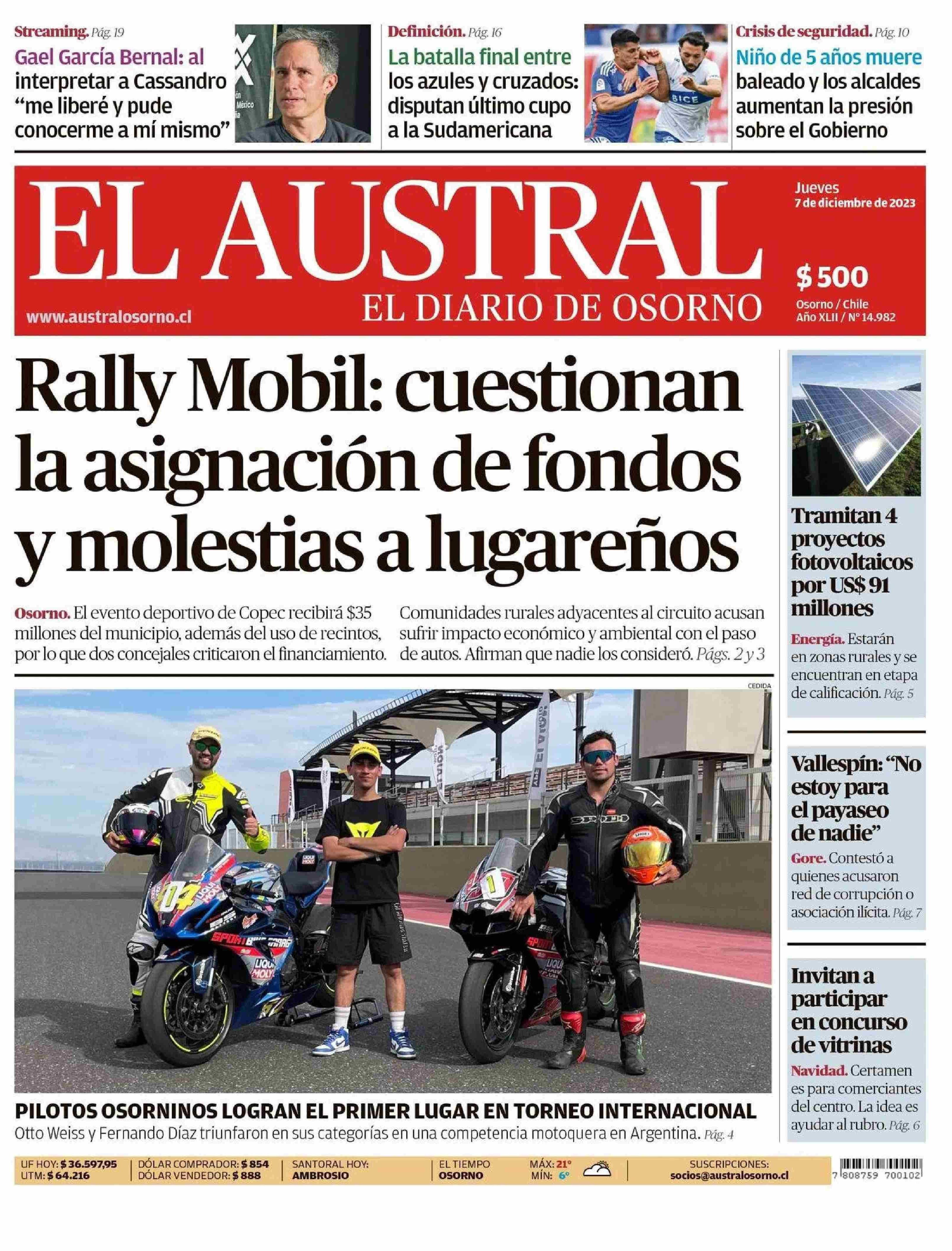 PORTADA EL AUSTRAL DE OSORNO - CHILE 07-12-2023 El Austral de Osorno |