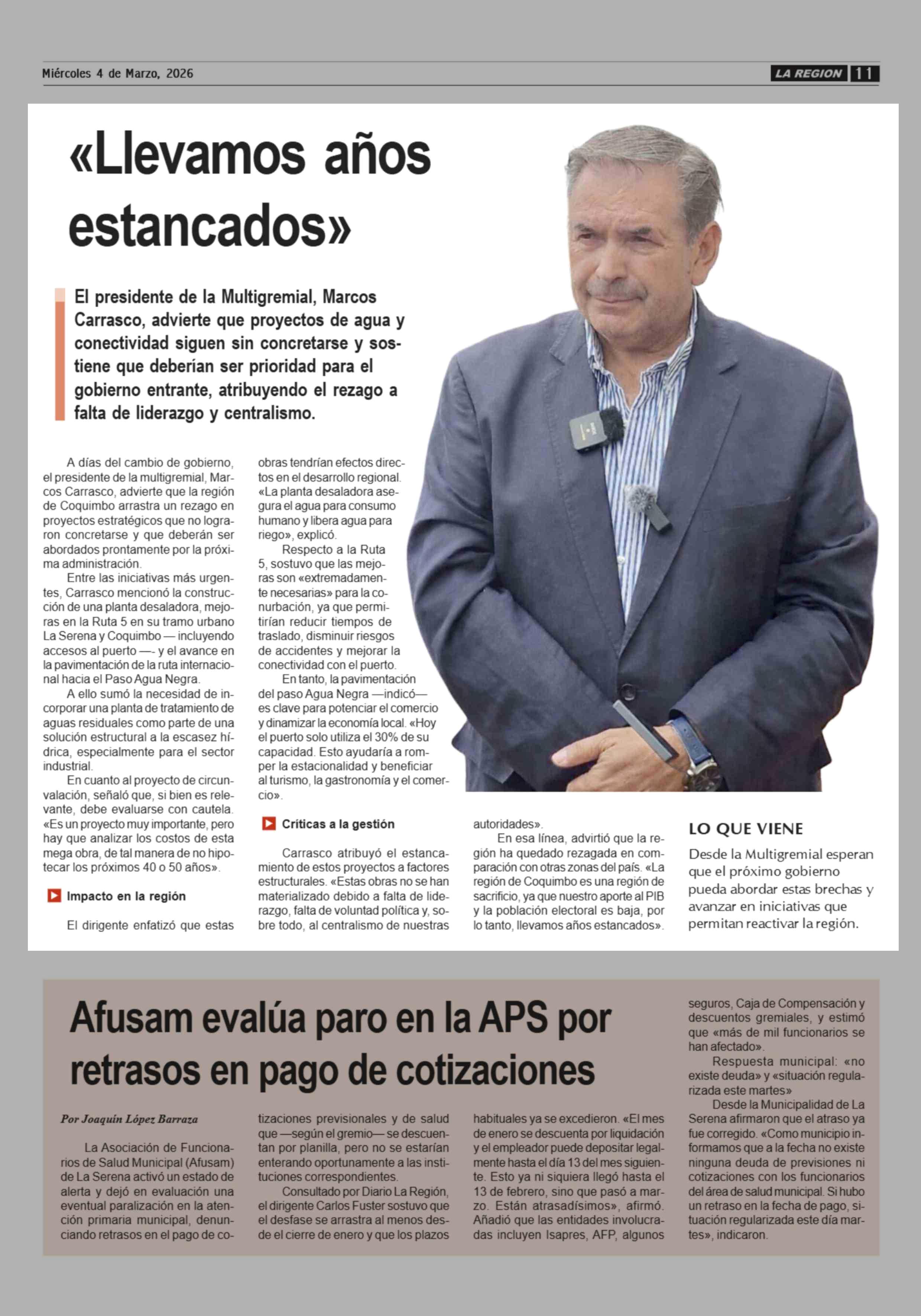 «Llevamos años estancados» 04-03-2026 Diario la Región |