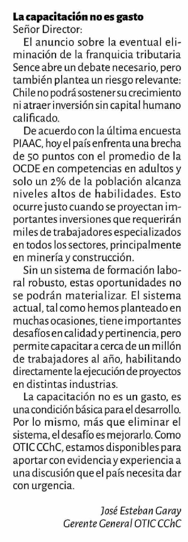 | Título: | Cartas: La capacitación no es gasto |