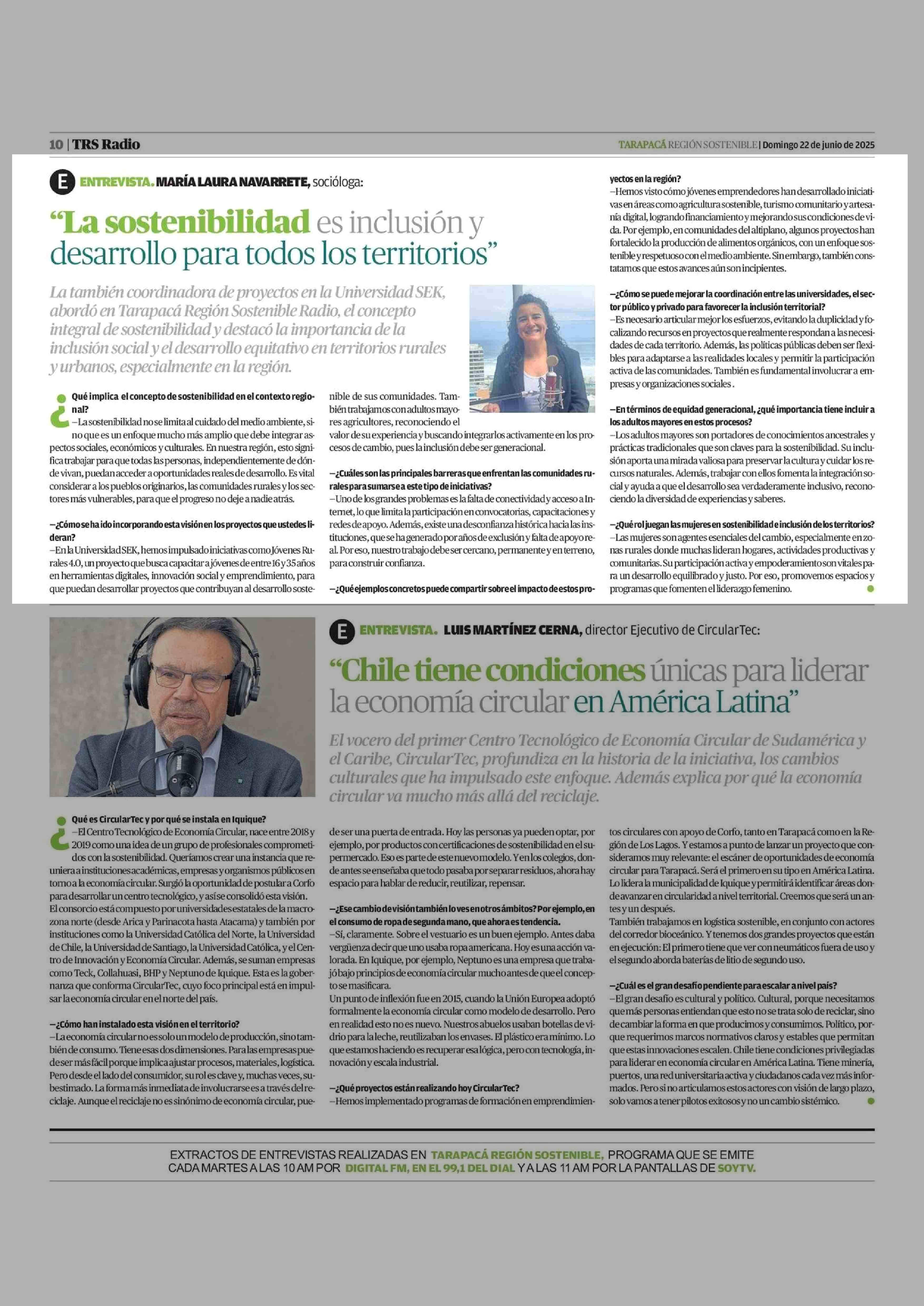 "La sostenibilidad es inclusión y desarrollo para todos los territorios" 22-06-2025 La Estrella de Iquique |