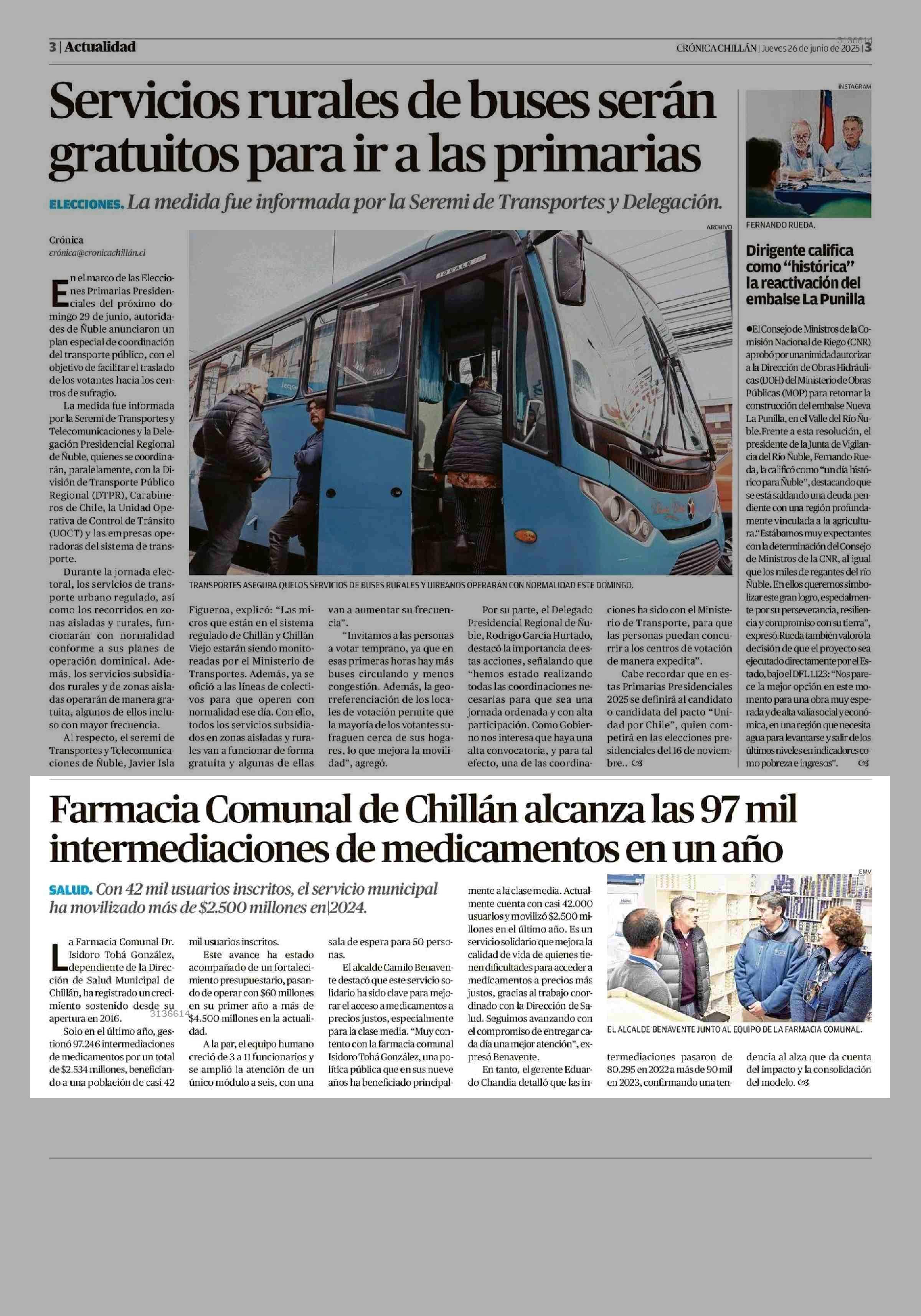 | Fecha: | 26-06-2025 | Sector: | Noticia general | Región: | Región del Ñuble |