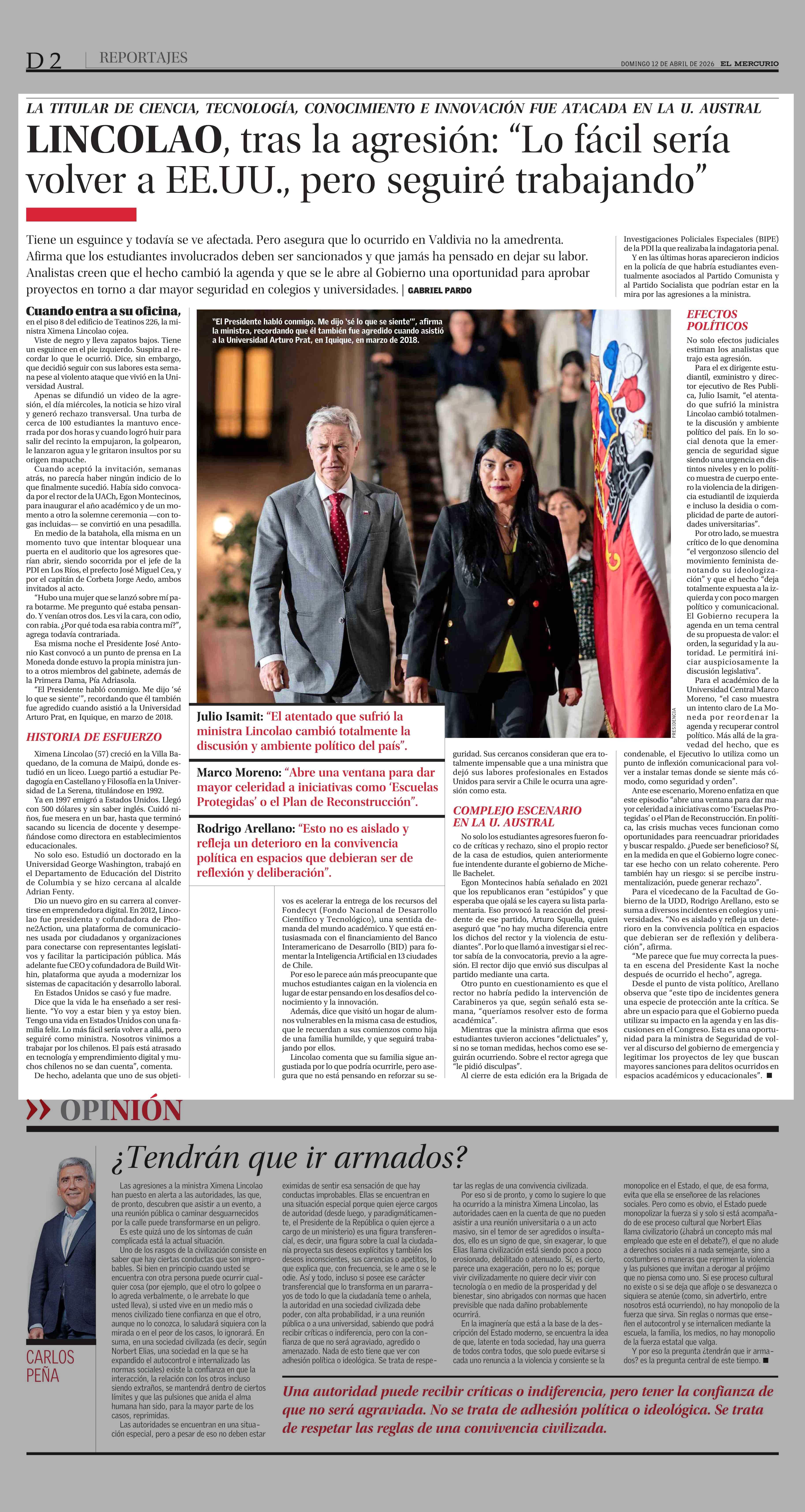 LINCOLAO, tras la agresión: “Lo fácil sería volver a EE.UU., pero seguiré trabajando” 12-04-2026 El Mercurio |