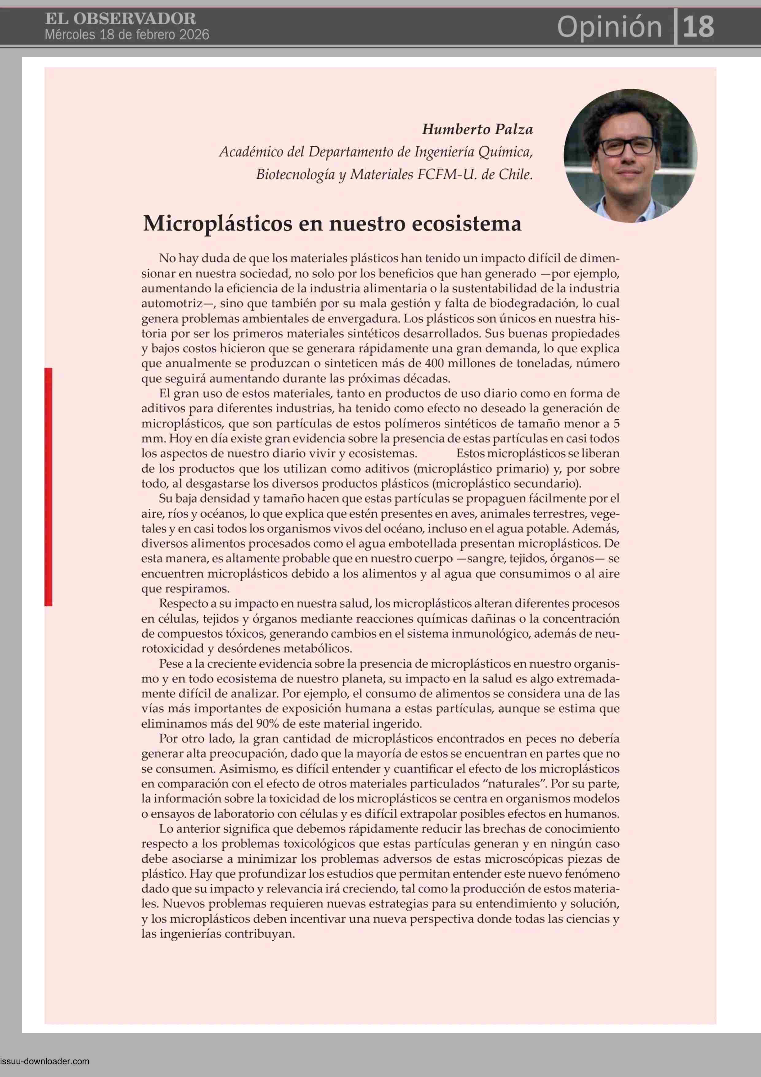Título: COLUMNAS DE OPINIÓN: Microplásticos en nuestro ecosistema