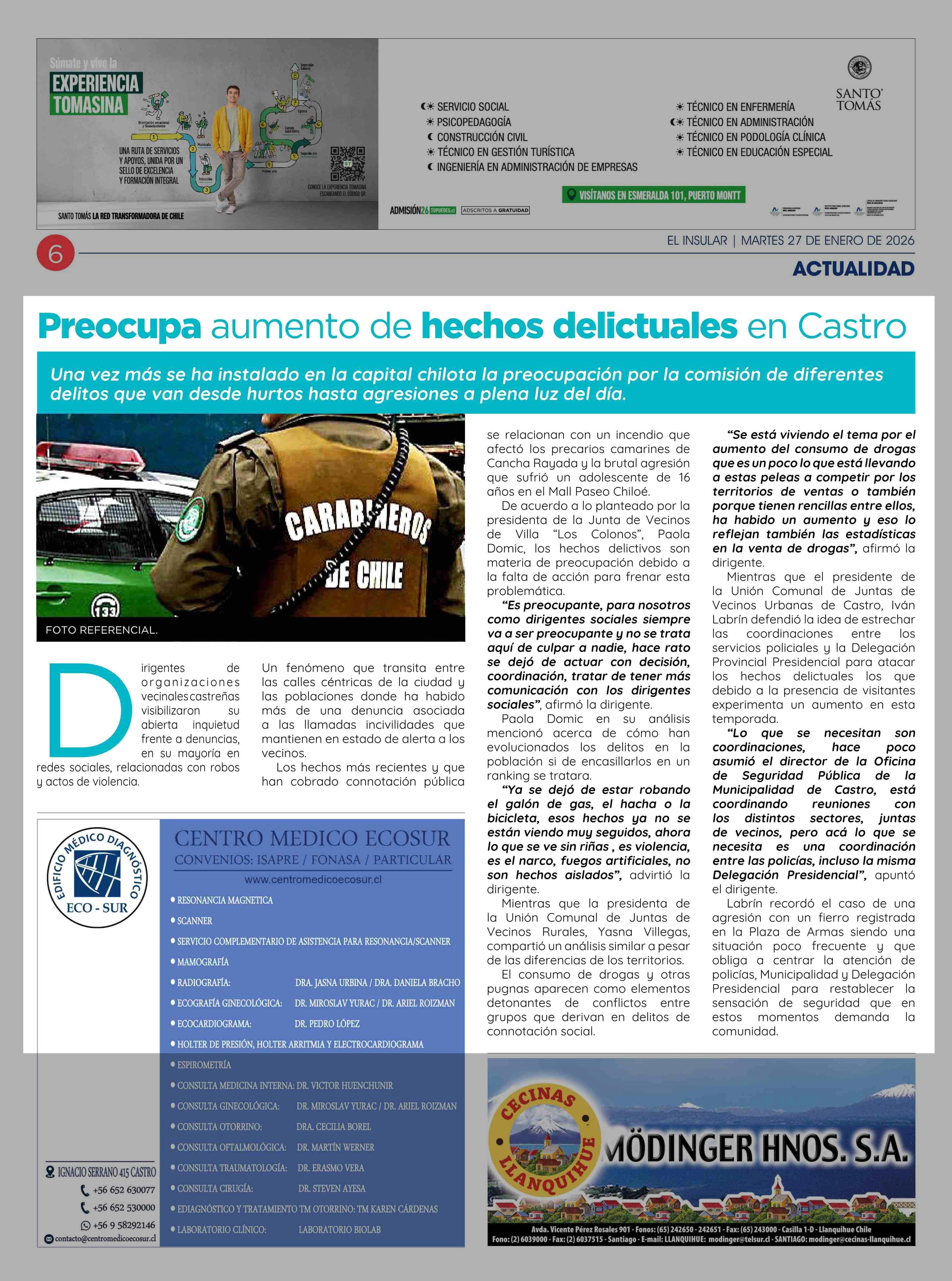 Preocupa aumento de hechos delictuales en Castro 27-01-2026 El Insular |