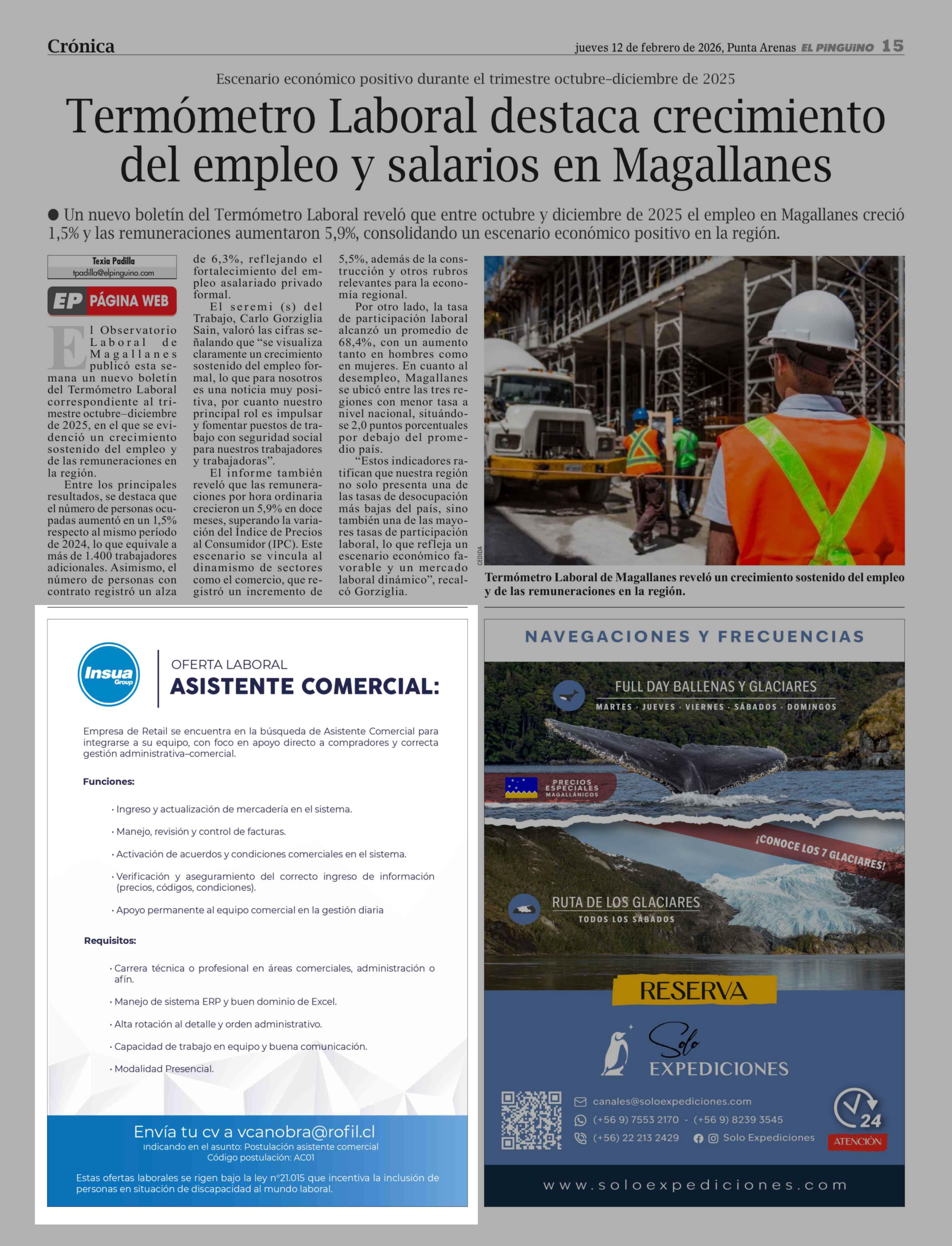 | Fecha: | 12-02-2026 | Sector: | Aviso Empleo | Región: | Región de Magallanes y de la Antártica Chilena |