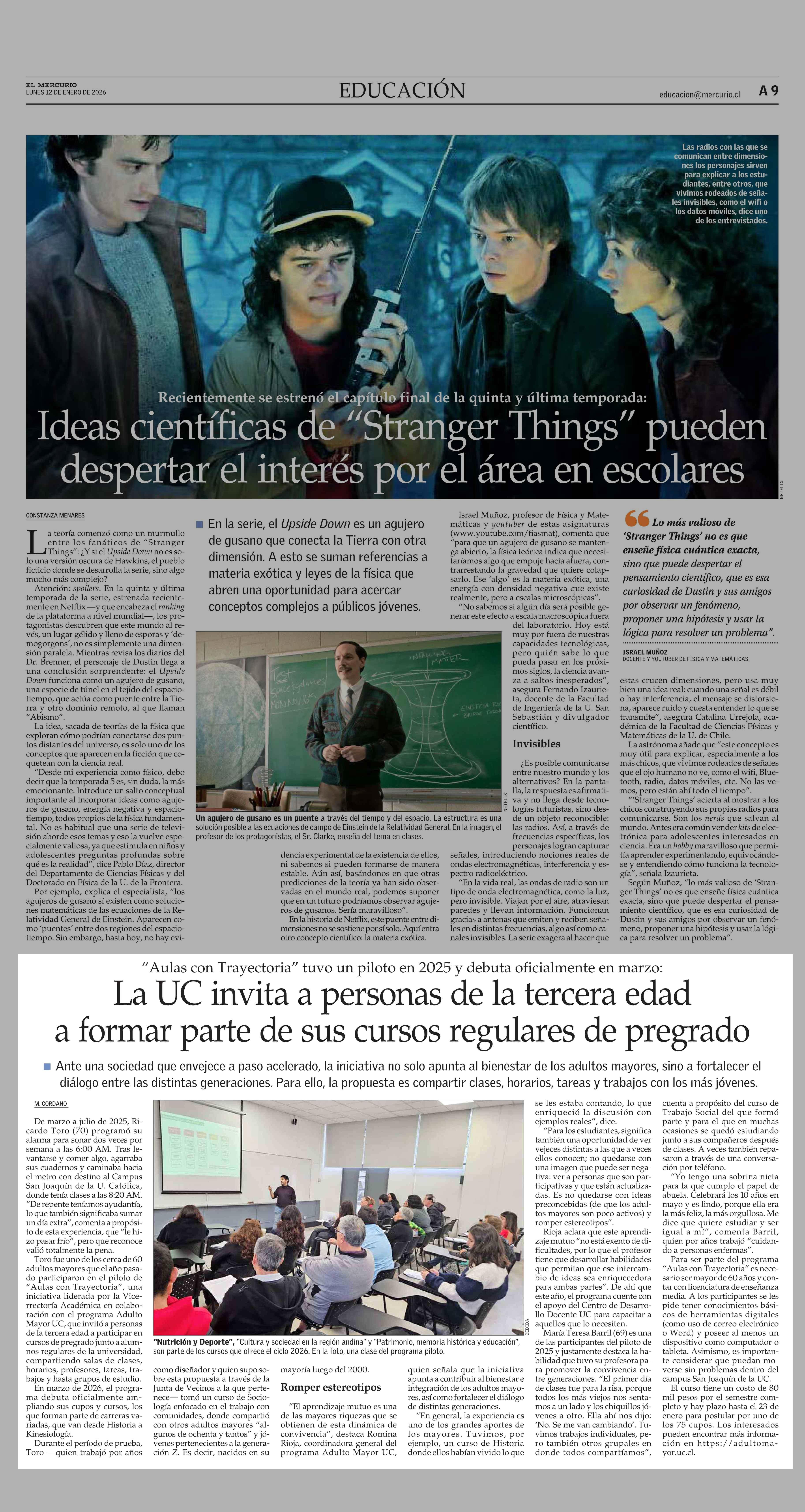 La UC invita a personas de la tercera edad a formar parte de sus cursos regulares de pregrado 12-01-2026 El Mercurio |