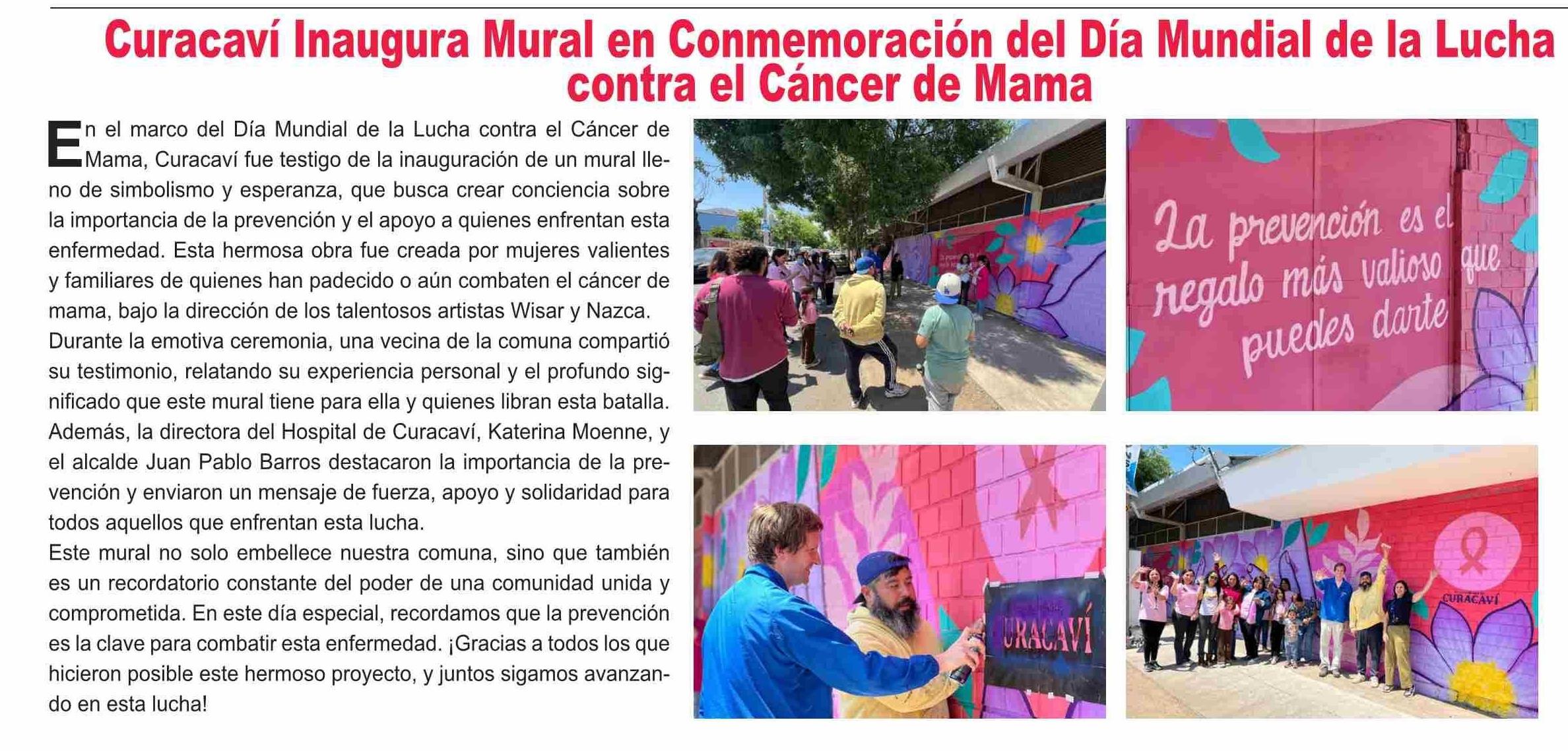 Curacaví Inaugura Mural en Conmemoración del Día Mundial de la Lucha contra el Cáncer de Mama 25-10-2024 Buenos Días Curacaví |